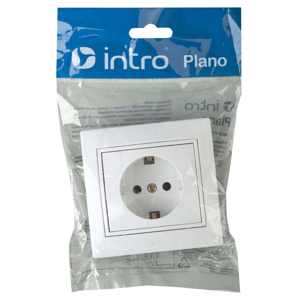 Купить Розетка Intro Plano 1-202-01 с заземлением 2P+E Schuko 16А-250В IP20 скрытой установки белая