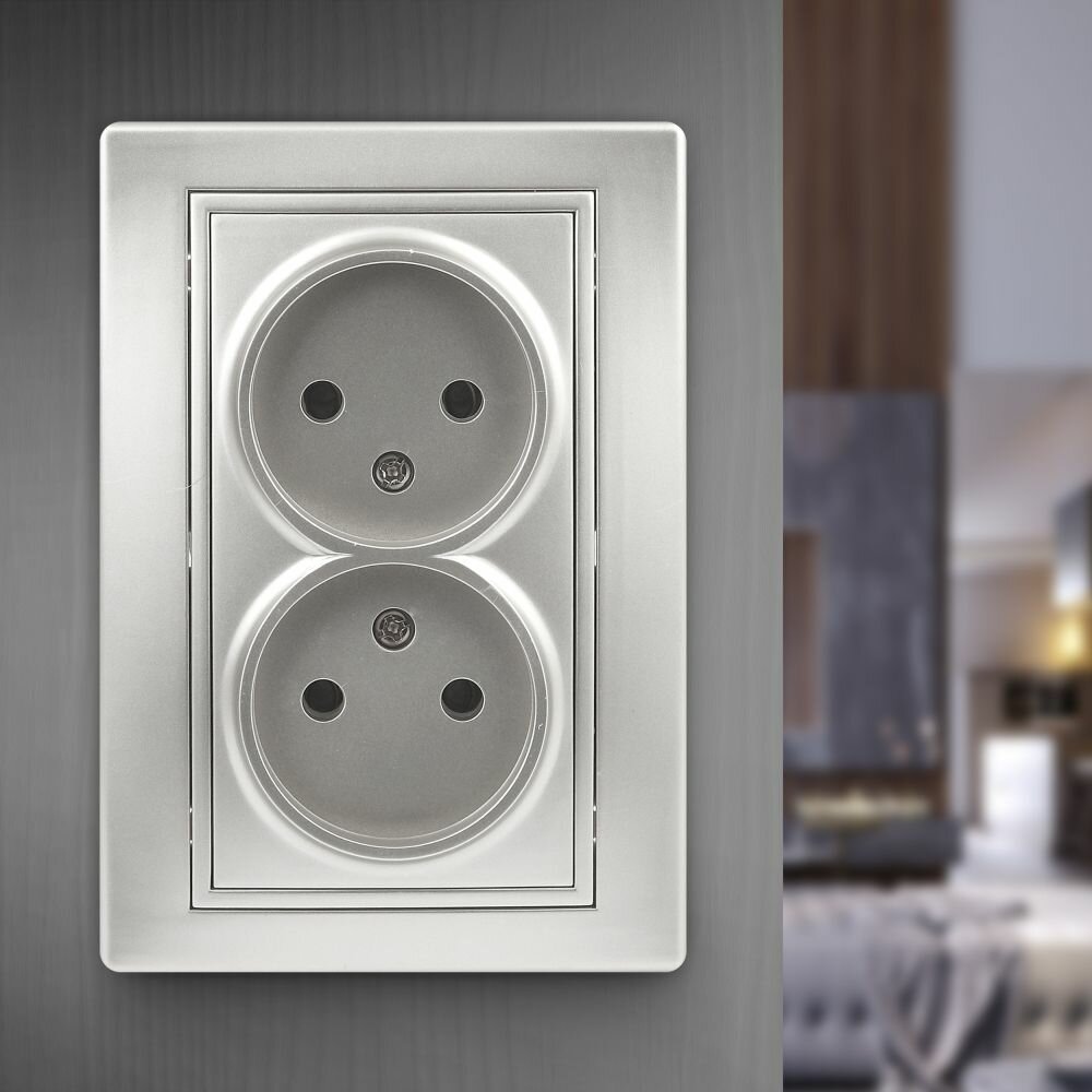 СохранитьРозетка Intro Plano 1-204-03 без заземления двойная 2х2P 16А-250В IP20 скрытой установки алюминий интересное: