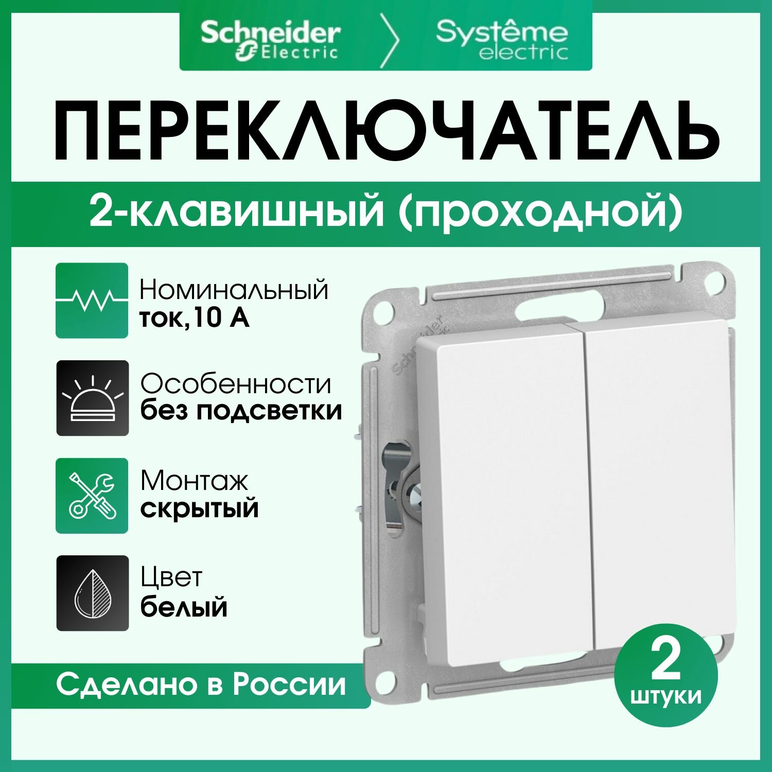 Купить Переключатель двухклавишный (проходной) Schneider Electric Atlas Design белый ATN000165 2 шт