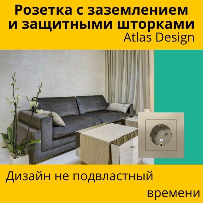 СохранитьРозетка электрическая Systeme Electric Atlas Design с заземлением и с защитными шторками, 16А Шампань ATN000545 - 1 шт. интересное: