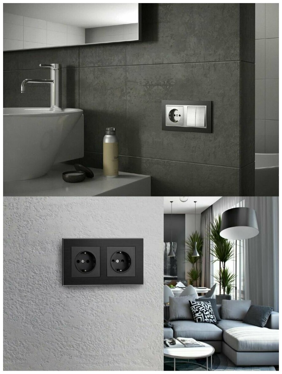 Розетка с заземлением, со шторками, алюминий, Schneider Electric Glossa (комплект 8шт)