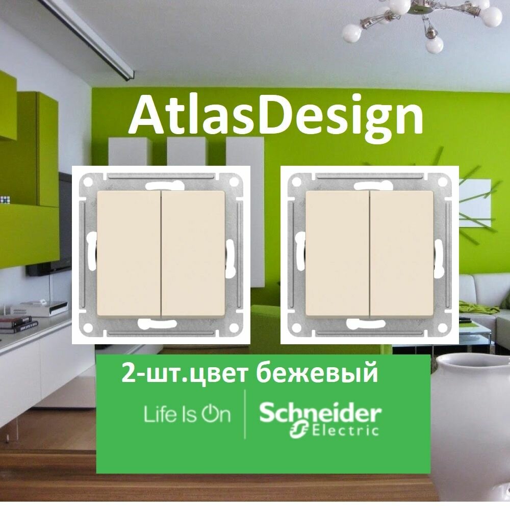 Выключатель Schneider Electric AtlasDesign, 2-клавишный, бежевый, ATN000251, 3 шт.