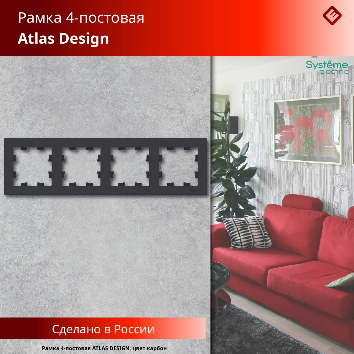 Рамка 4-постовая для розеток и выключателей Черная (Карбон) AtlasDesign (Атлас Дизайн) Schneider Electric ATN001004 4шт