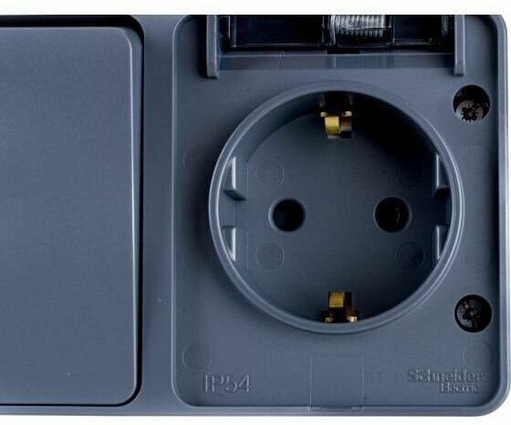 СохранитьБлок розетка с заземлением со шторками 16А 250B и двухклавишный выключатель 10А Schneider Electric AtlasDesign PROFI IP54 открытой установки ATN544074 интересное: