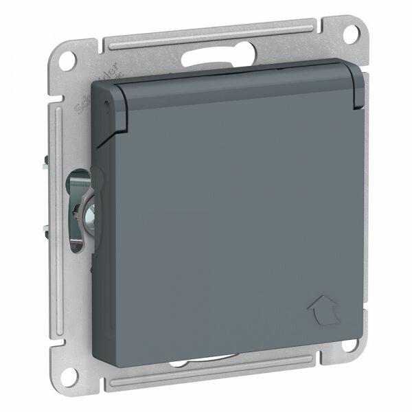 ATLASDESIGN AQUA розетка с заземл. со шторк с крышк, 16А, IP44, механизм, карбон | код ATN441046 | Schneider Electric (1 шт.)