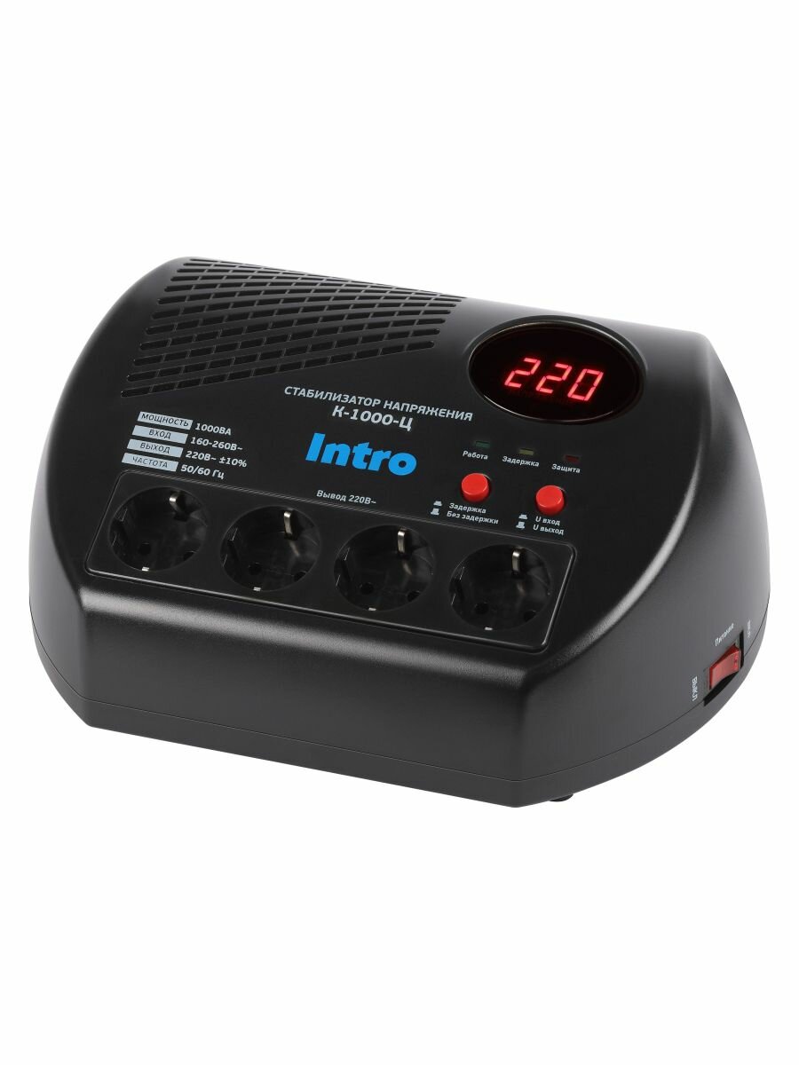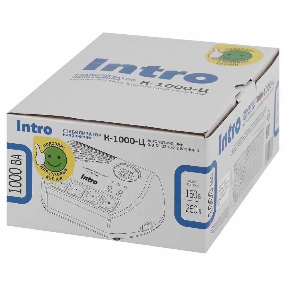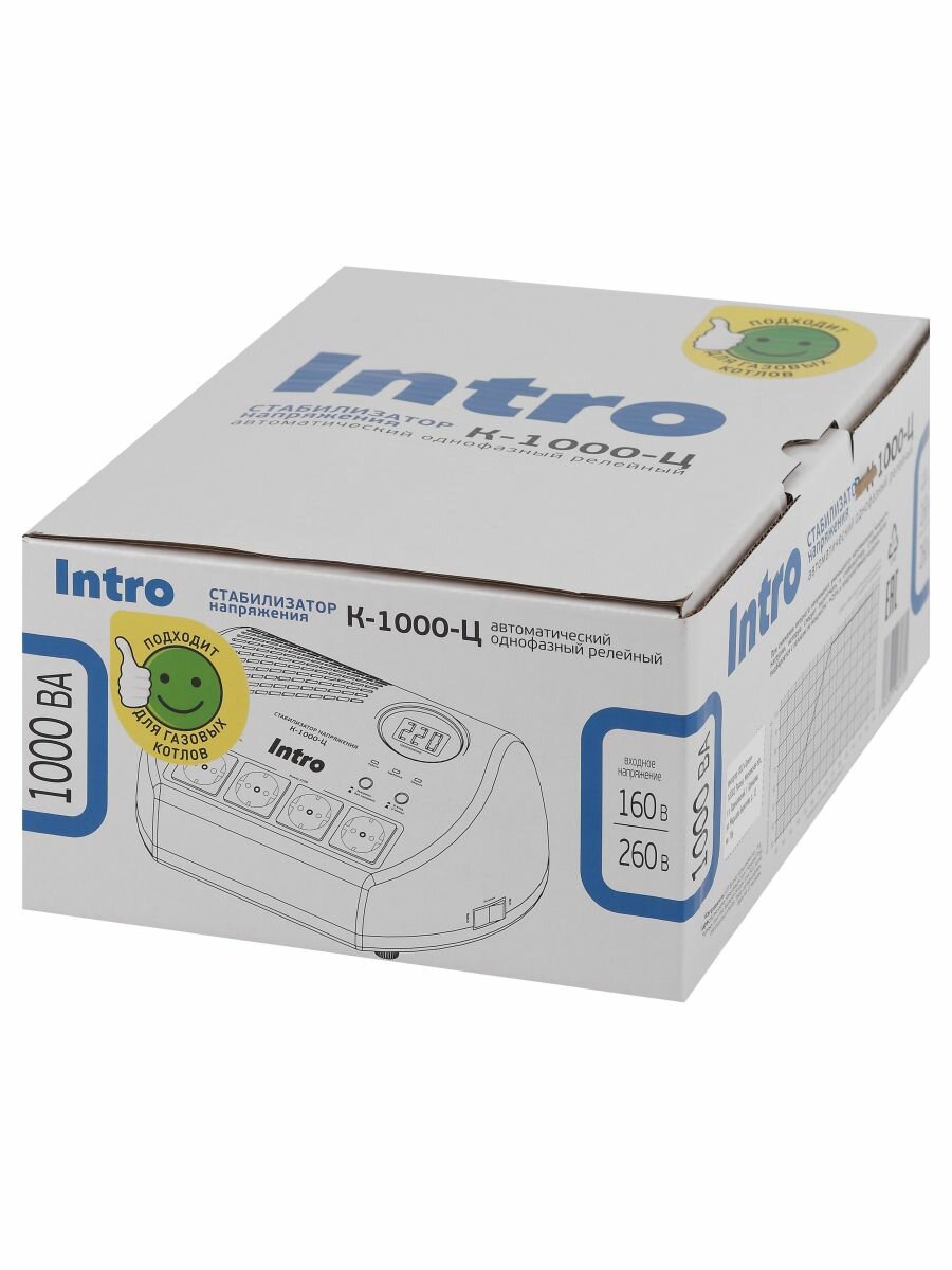 Купить Стабилизатор напряжения 220в Intro К-1000-Ц однофазный релейный компактный для газового котла 1000ВА, 160-260В