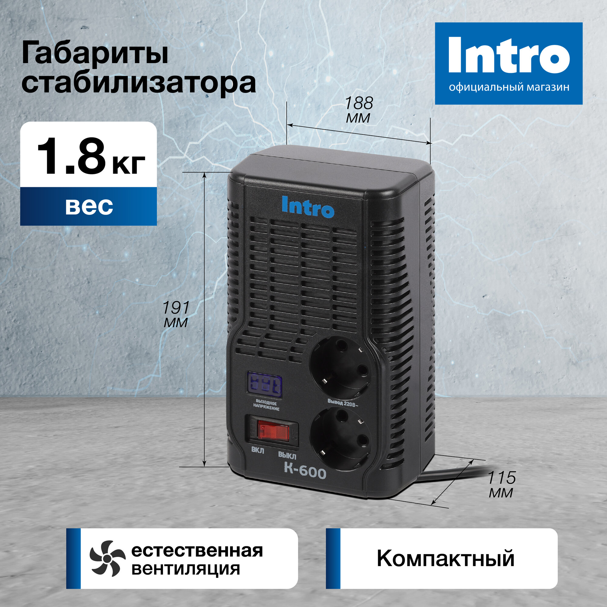 Стабилизатор напряжения 220в Intro К-500-УЦ компактный универсальный 140-260В/220В