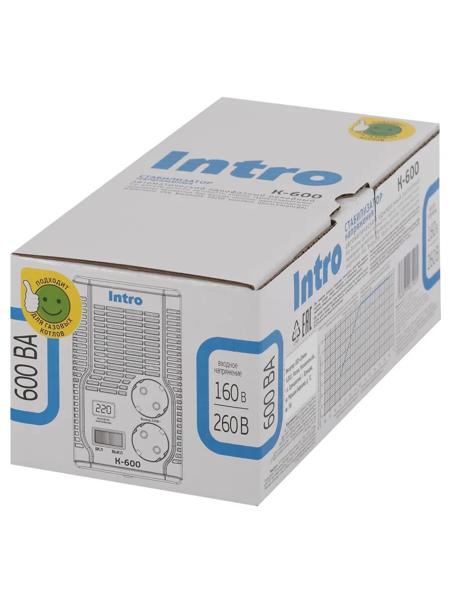 Стабилизатор напряжения 220в Intro К-1000 однофазный релейный компактный для газового котла 1000ВА, 160-260В