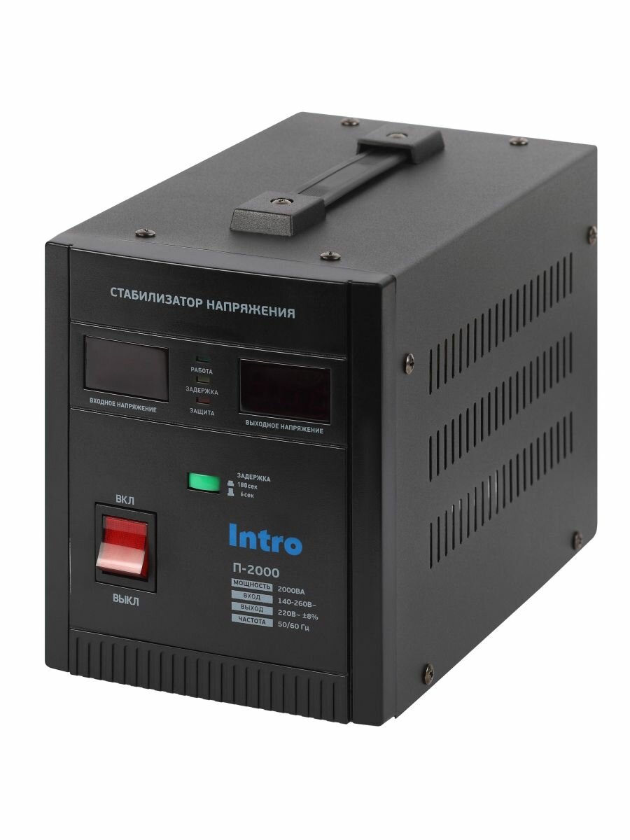 Купить Стабилизатор напряжения 220в Intro П-2000 однофазный релейный переносной напольный для газового котла 2000ВА, 140-260В