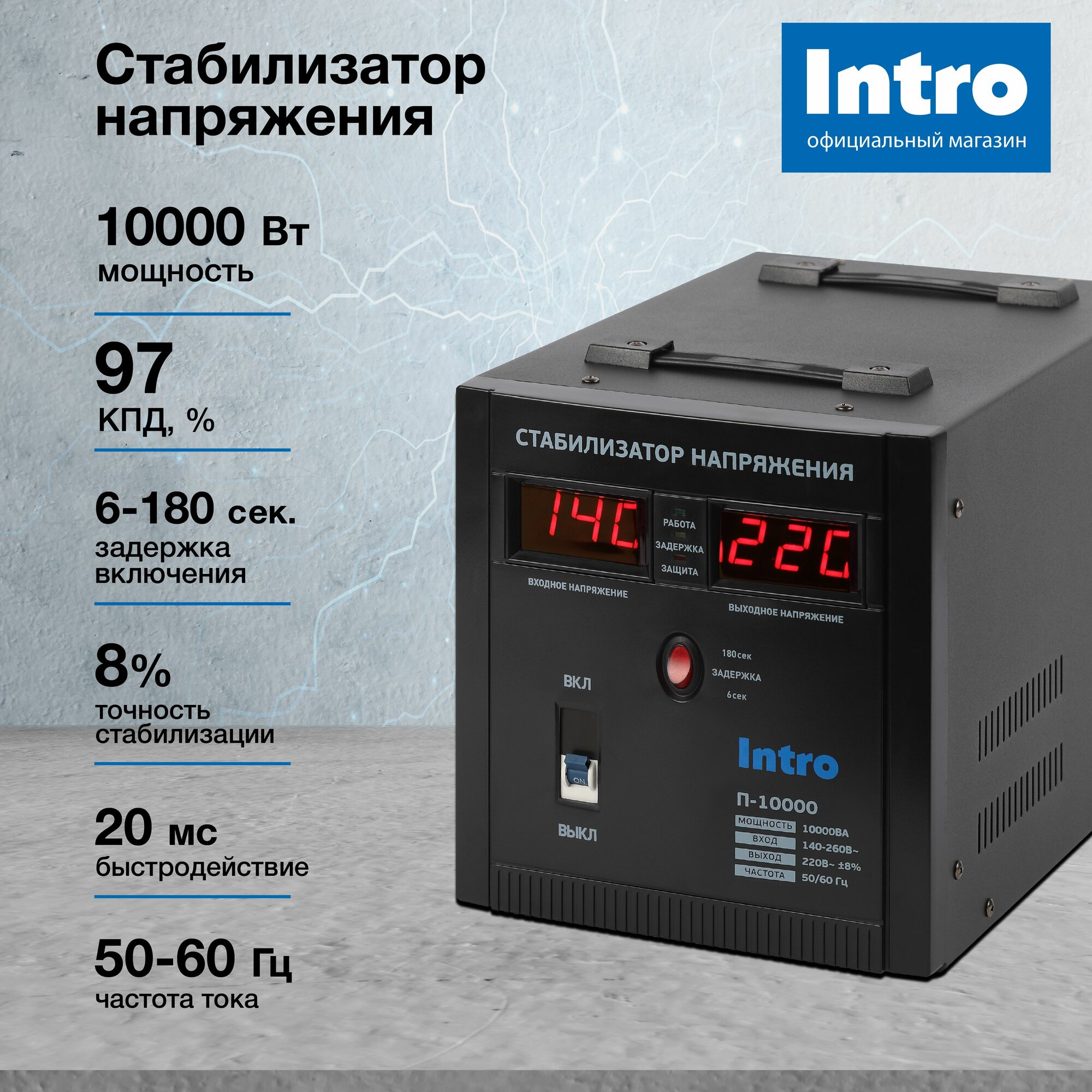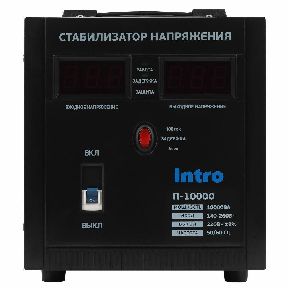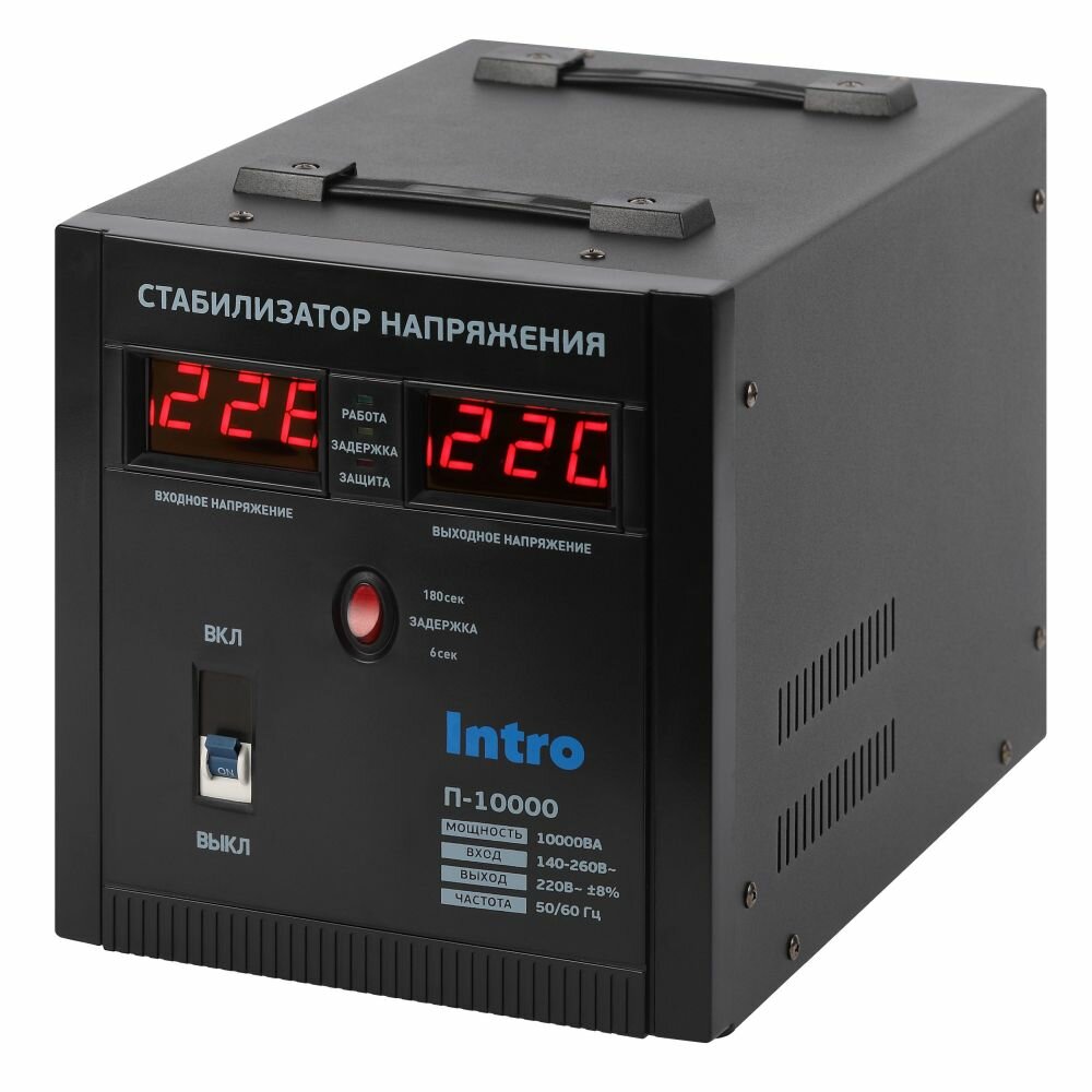 Купить Стабилизатор напряжения 220в Intro П-10000 однофазный релейный переносной напольный для газового котла 10000ВА, 140-260В
