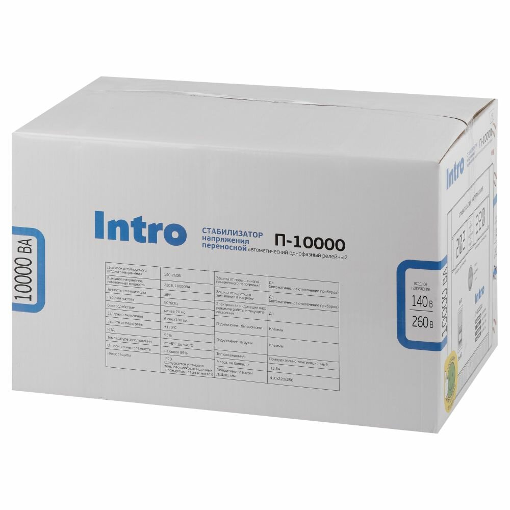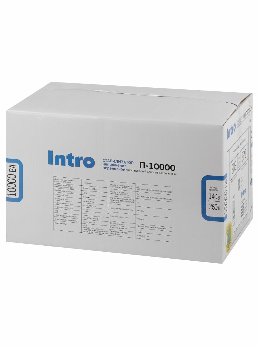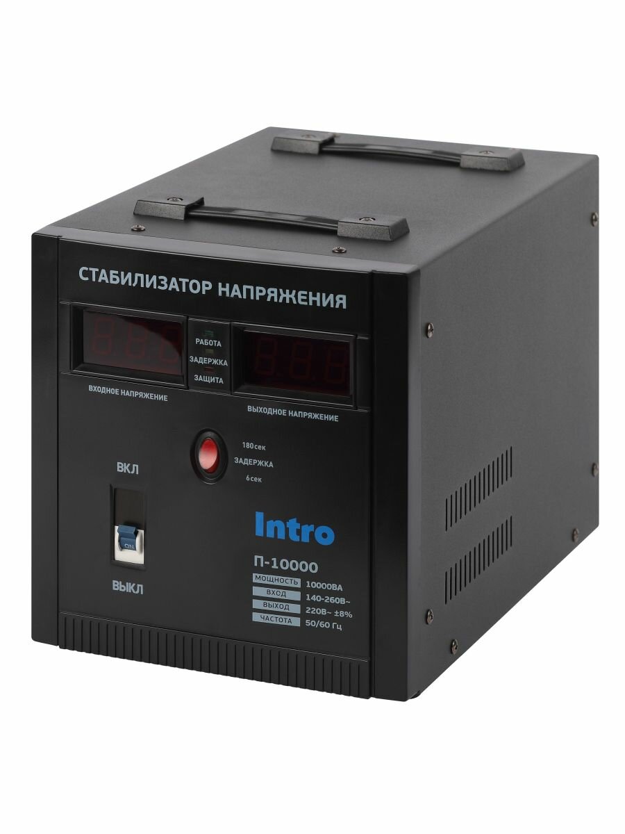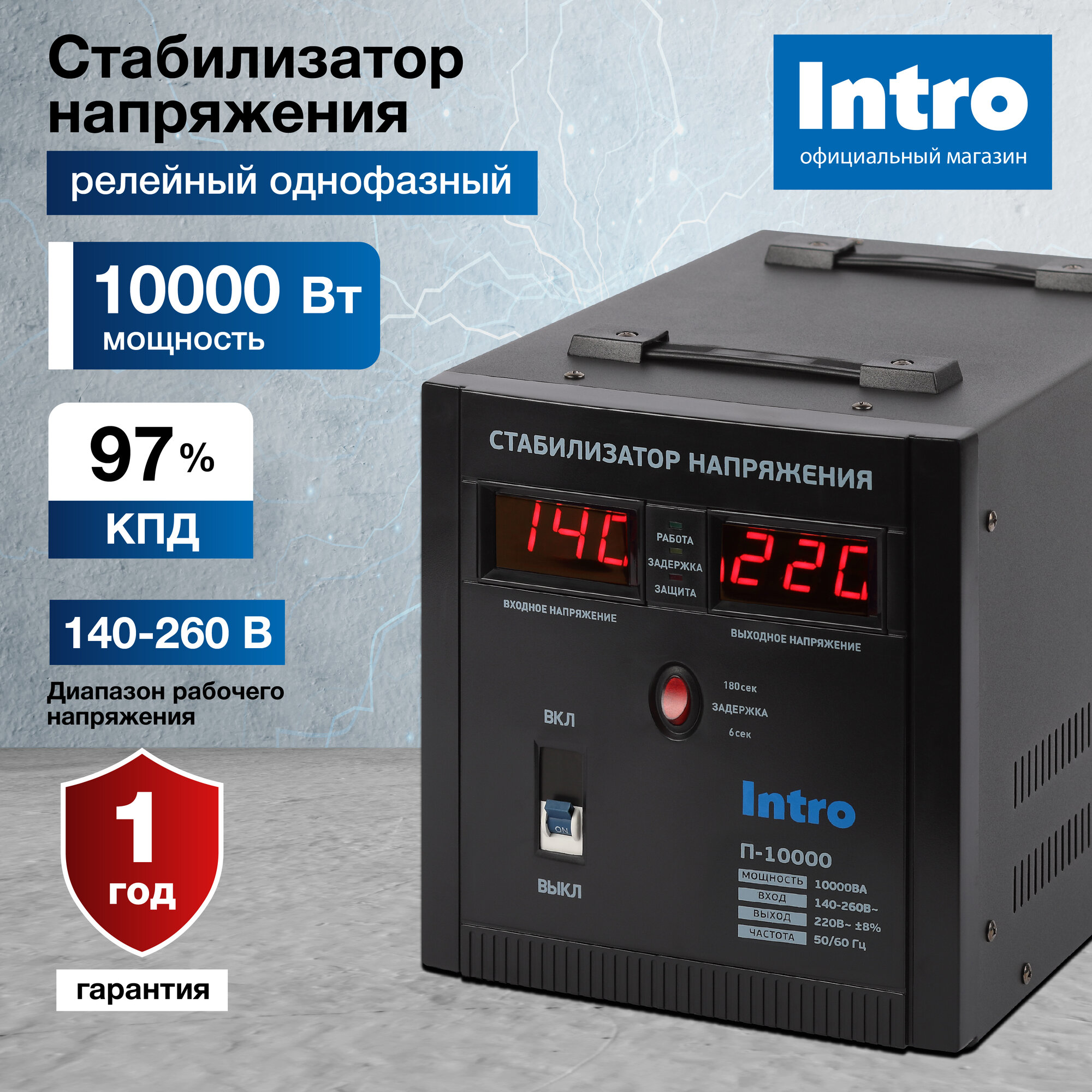 Купить Стабилизатор напряжения 220в Intro П-10000 однофазный релейный переносной напольный для газового котла 10000ВА, 140-260В