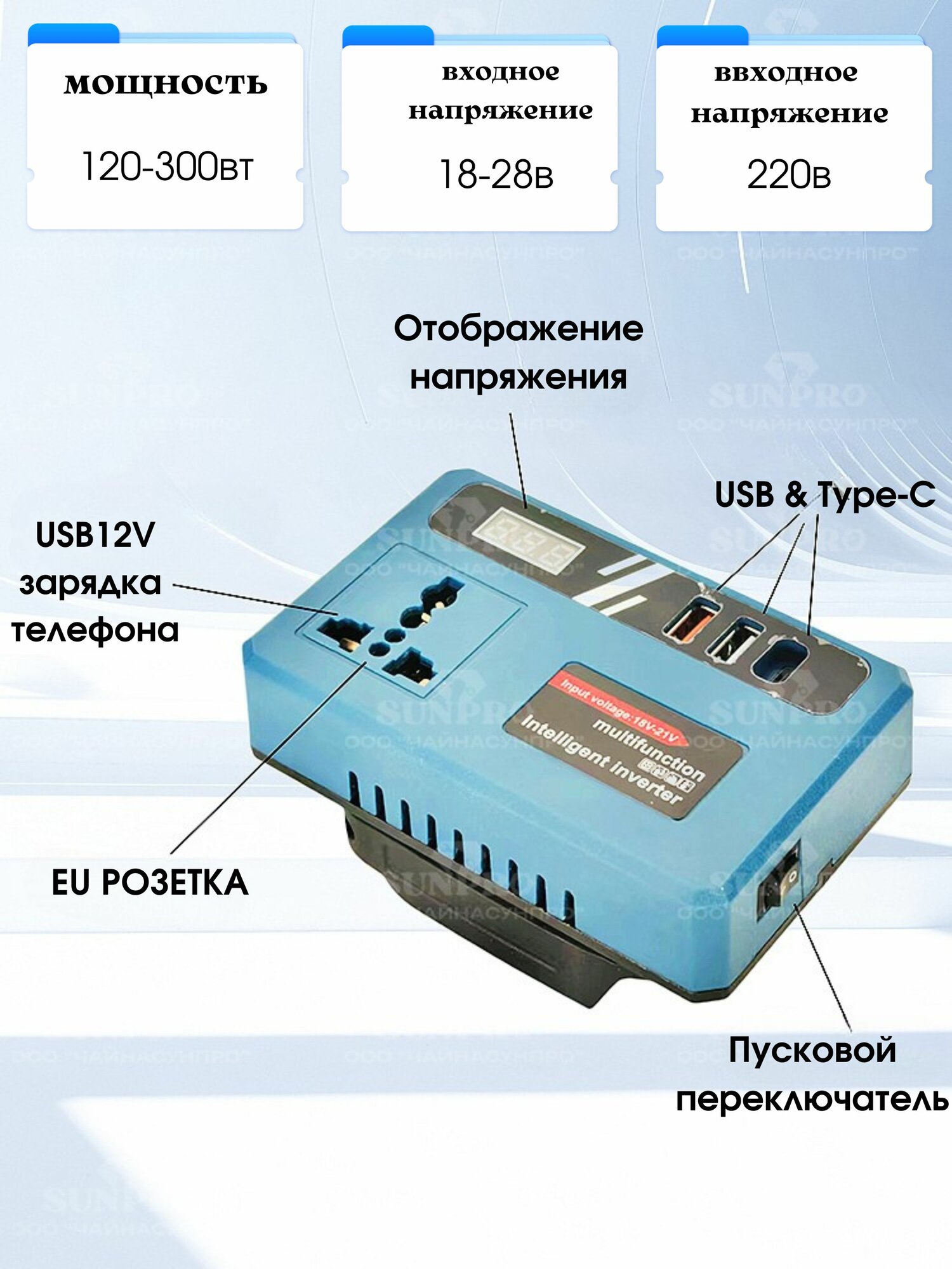Инвертор для литиевых батарей мощностью 120 Вт, инвертор Makita с 21 В до 220 В переменного тока интересное: