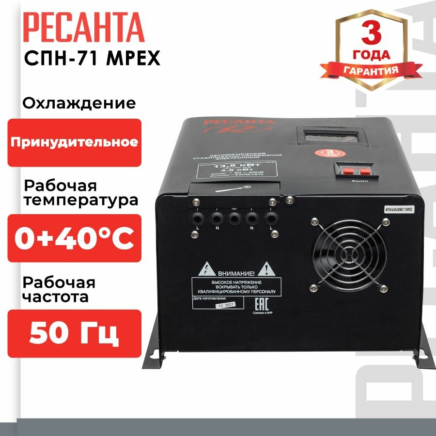 Ниже Вы можете прочитать отзывы на Стабилизатор напряжения Ресанта СПН-71 MPEX (однофазный, 90 В - 260 В, 71 А, 13.5 кВт, 50 Гц, клеммы, LCD-дисплей), ознакомится с подробными характеристиками, посмотреть интересные обзоры и фотографии на Стабилизатор напряжения Ресанта СПН-71 MPEX (однофазный, 90 В - 260 В, 71 А, 13.5 кВт, 50 Гц, клеммы, LCD-дисплей).