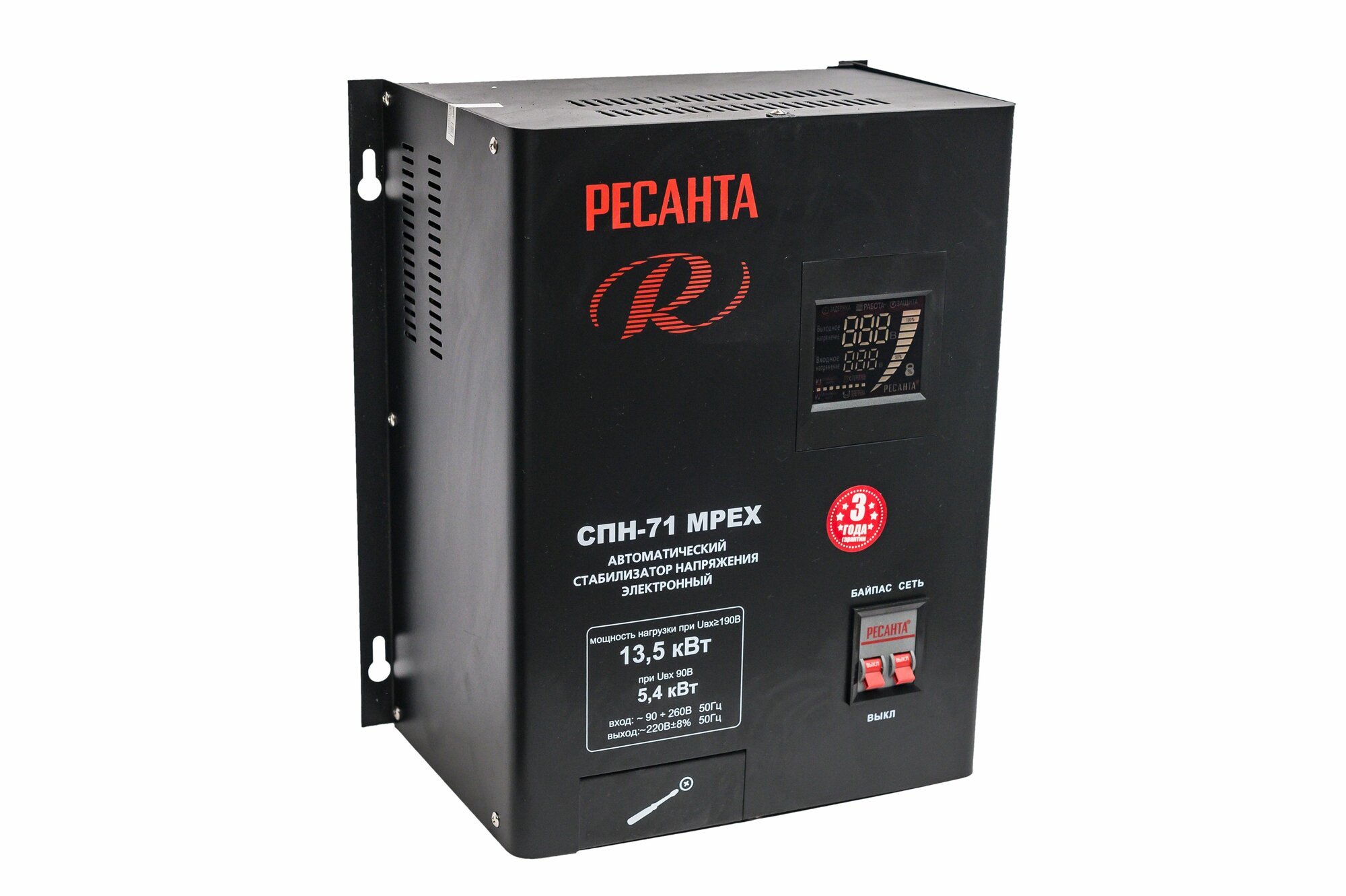 Купить Стабилизатор напряжения Ресанта СПН-71 MPEX (однофазный, 90 В - 260 В, 71 А, 13.5 кВт, 50 Гц, клеммы, LCD-дисплей)
