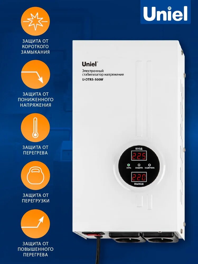 Стабилизатор напряжения 500 ВА, настенный, 2 розетки, Uniel. интересное: