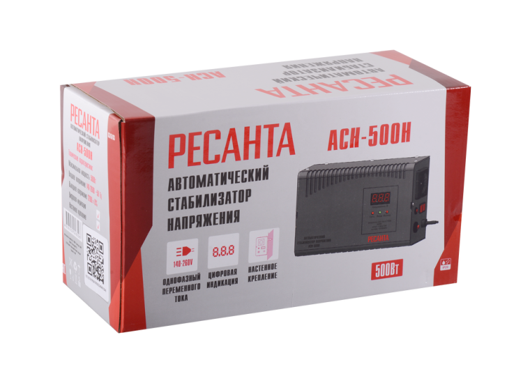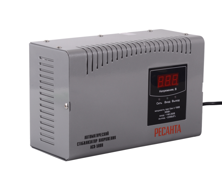 Купить Стабилизатор Ресанта АСН-500 Н, однофазный, вход: 140 В - 260 В, выход: 220 В ±8%, 2.6 А, 0.5 кВт, 50 Гц, LED дисплей