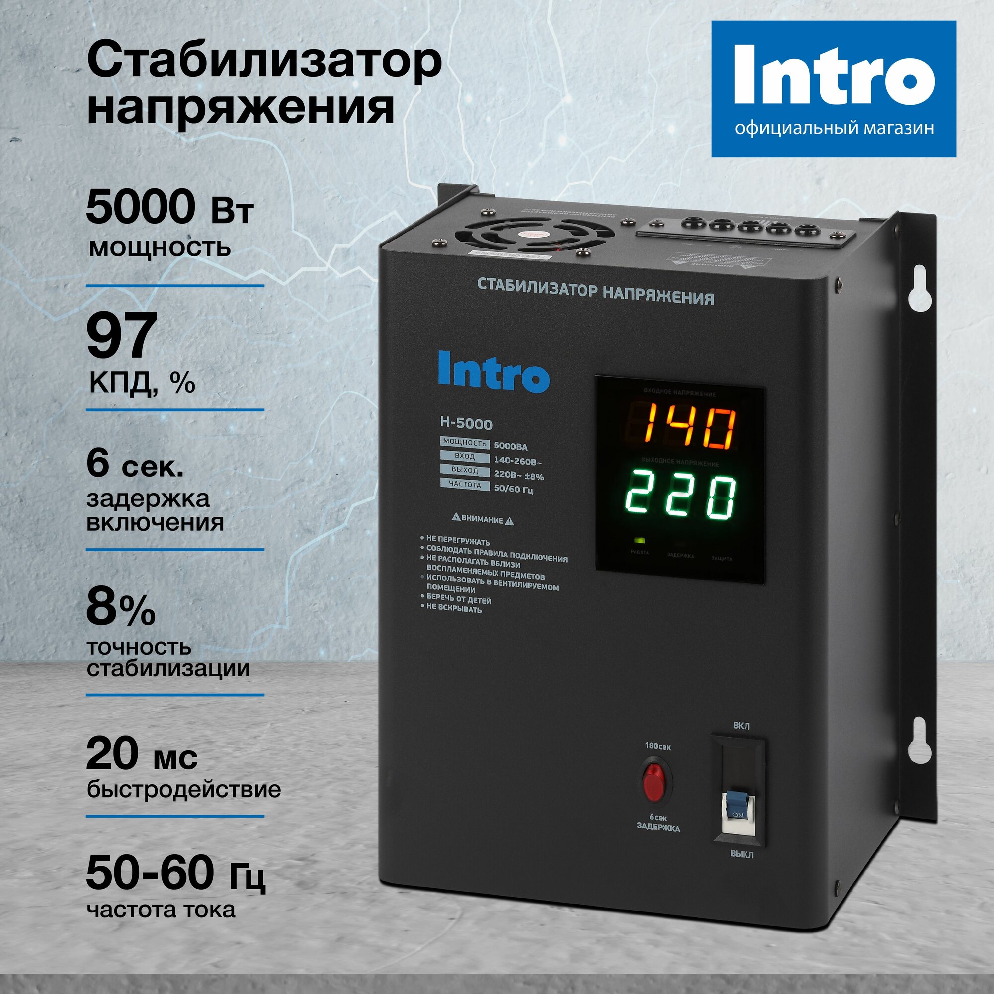 Купить Стабилизатор напряжения 220в Intro Н-5000 однофазный релейный настенный для газового котла 5000ВА, 140-260В