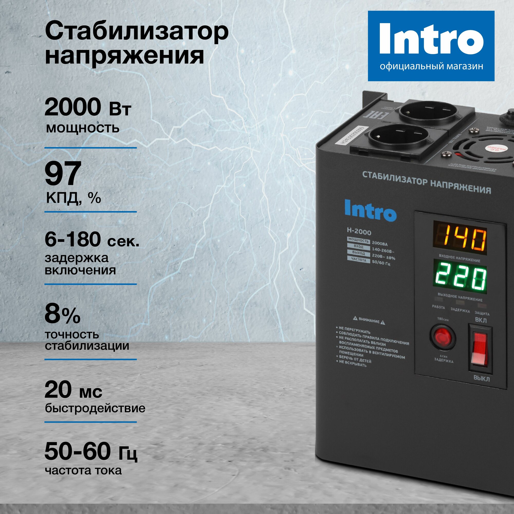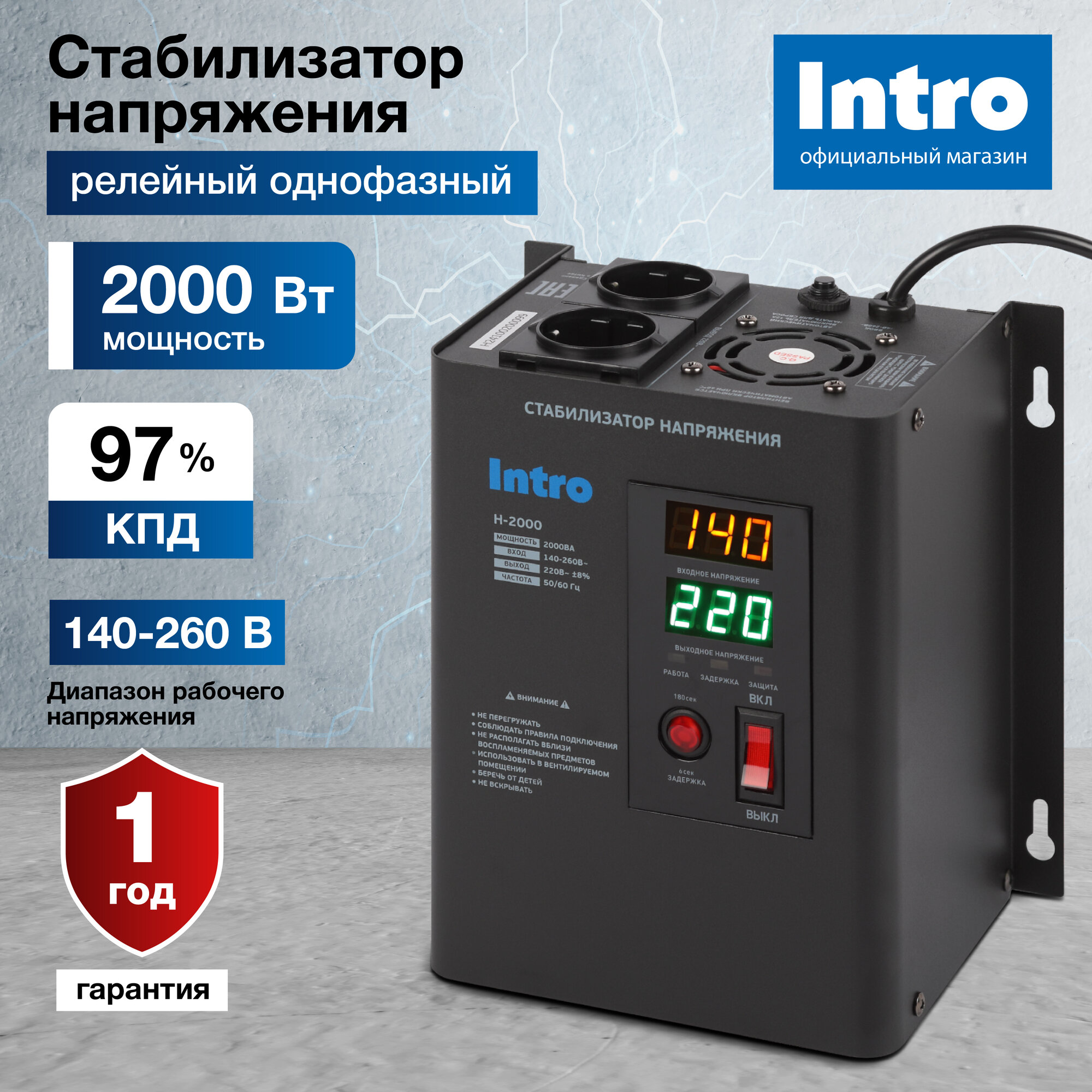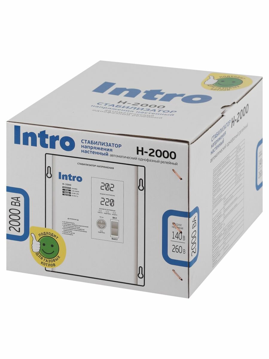 Стабилизатор напряжения 220в Intro Н-2000 однофазный релейный настенный для газового котла 2000ВА, 140-260В интересное: