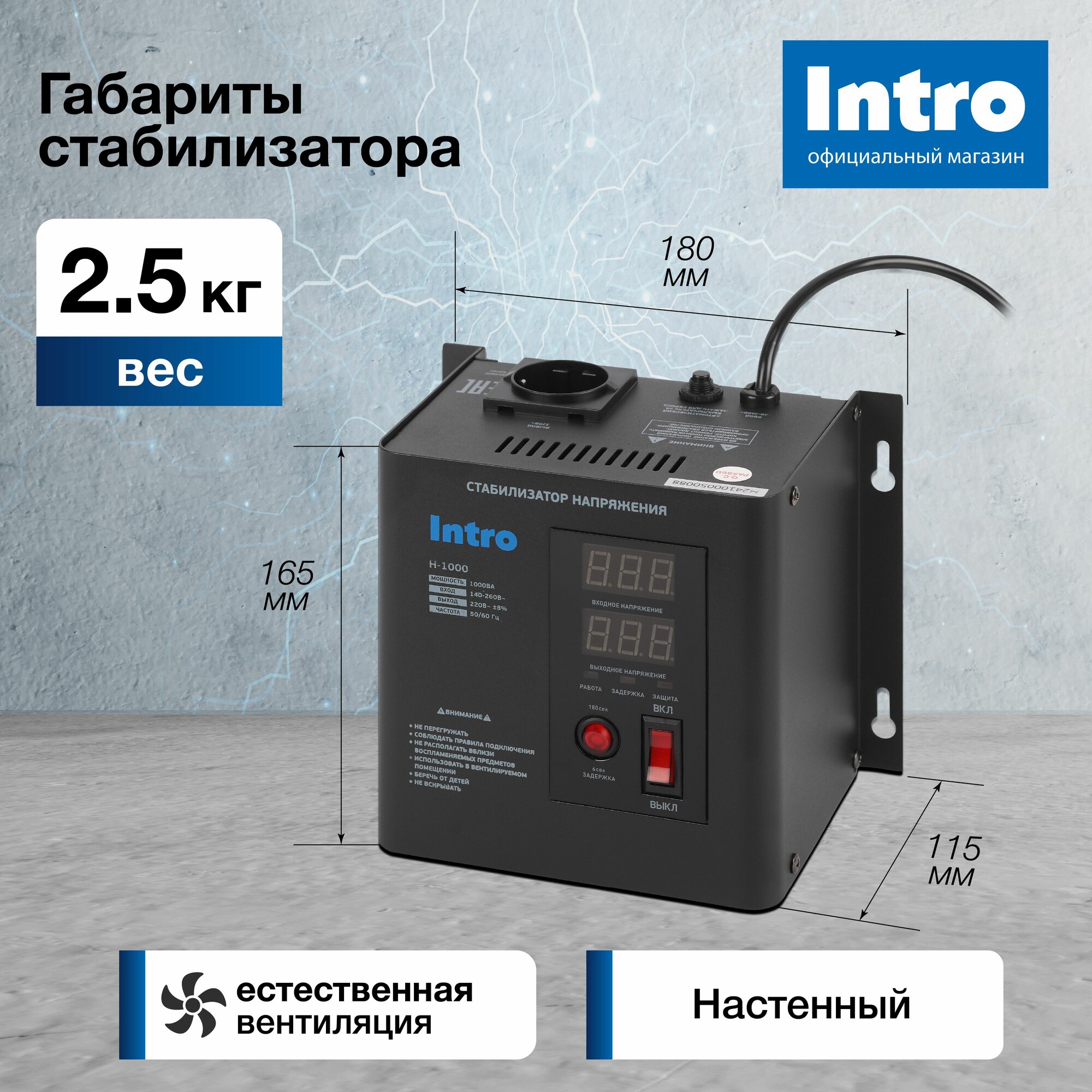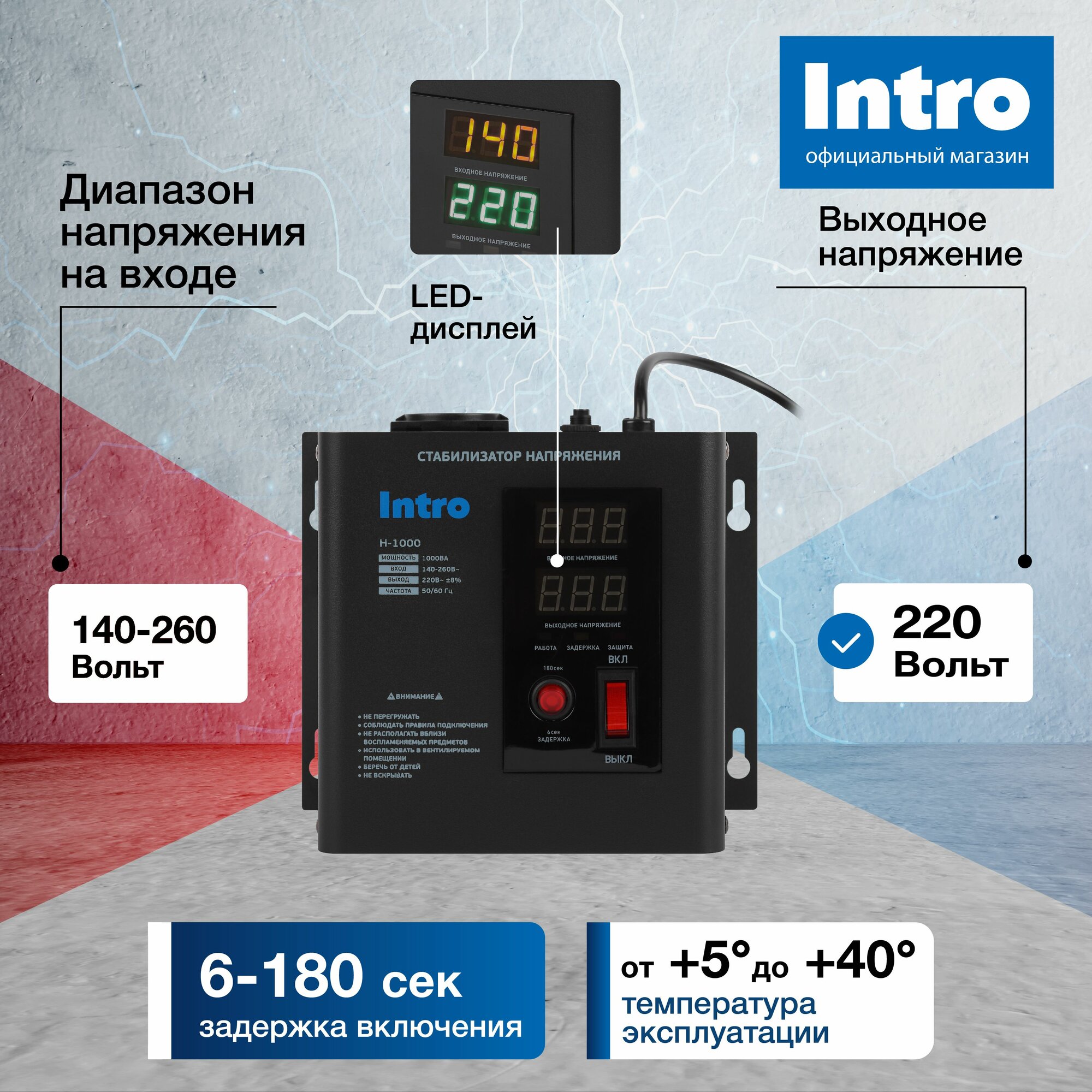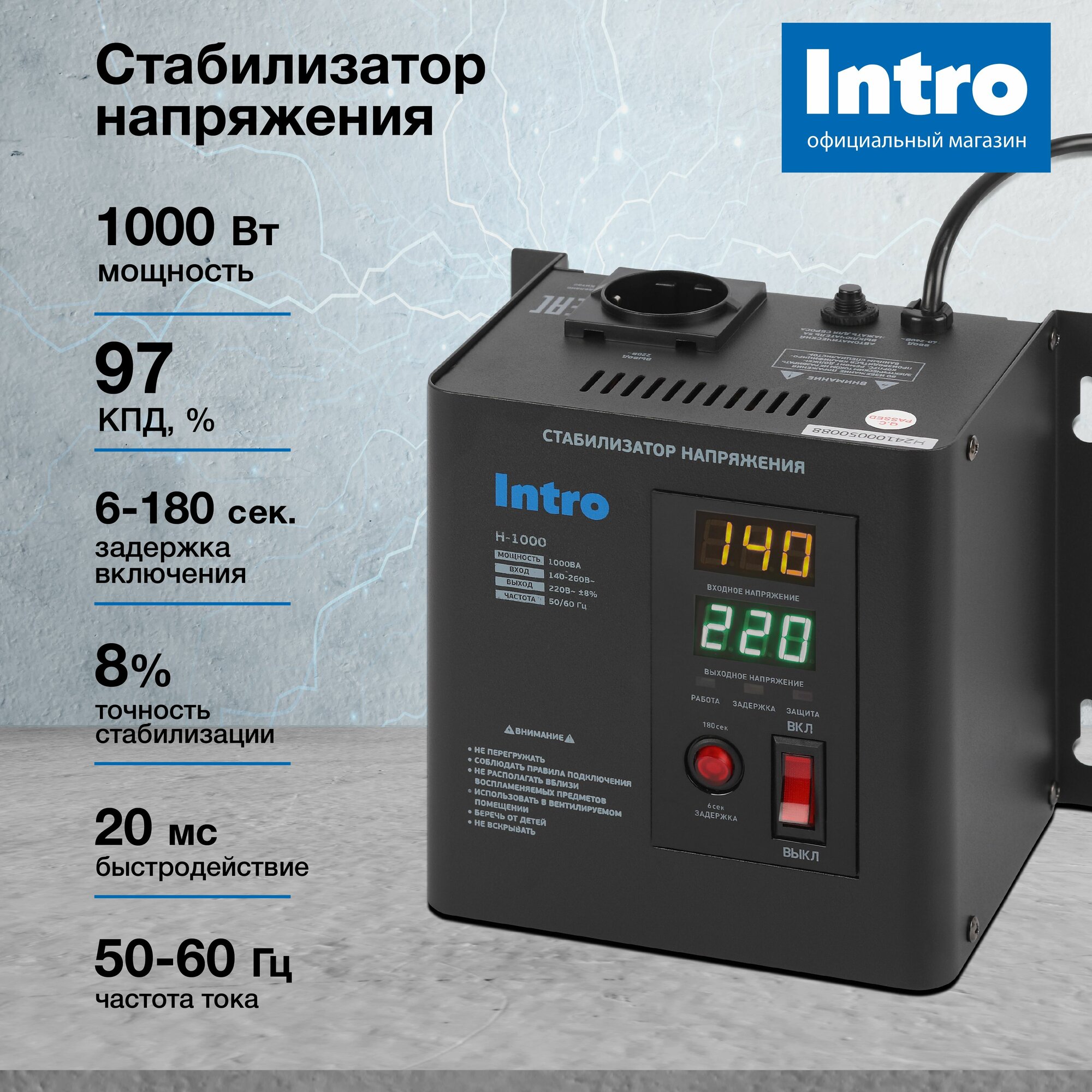 Стабилизатор напряжения 220в Intro Н-1000 однофазный релейный настенный для газового котла 1000ВА, 140-260В интересное: