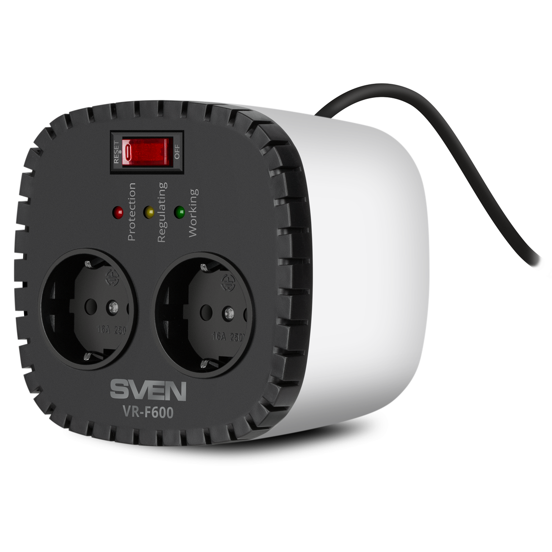 Стабилизатор Sven VR-F 600, черный/серый 200 Вт, 0 ВА, входное напряжение 170 - 285 В. интересное: