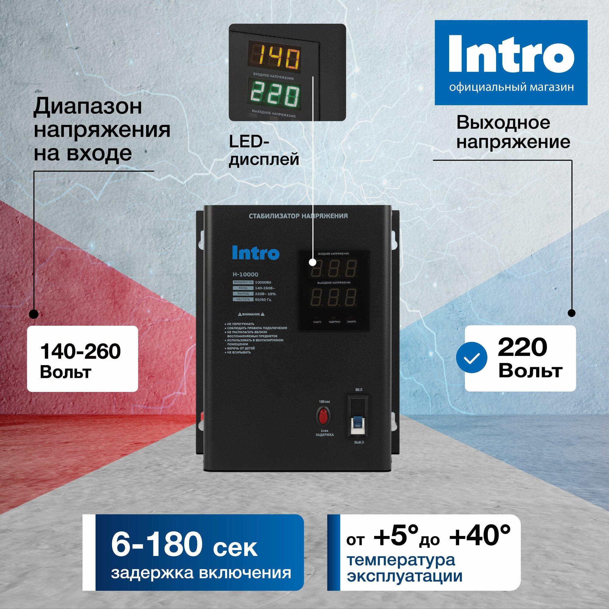 Стабилизатор напряжения 220в Intro Н-10000 однофазный настенный для газового котла 10000ВА, 140-260В/220В интересное: