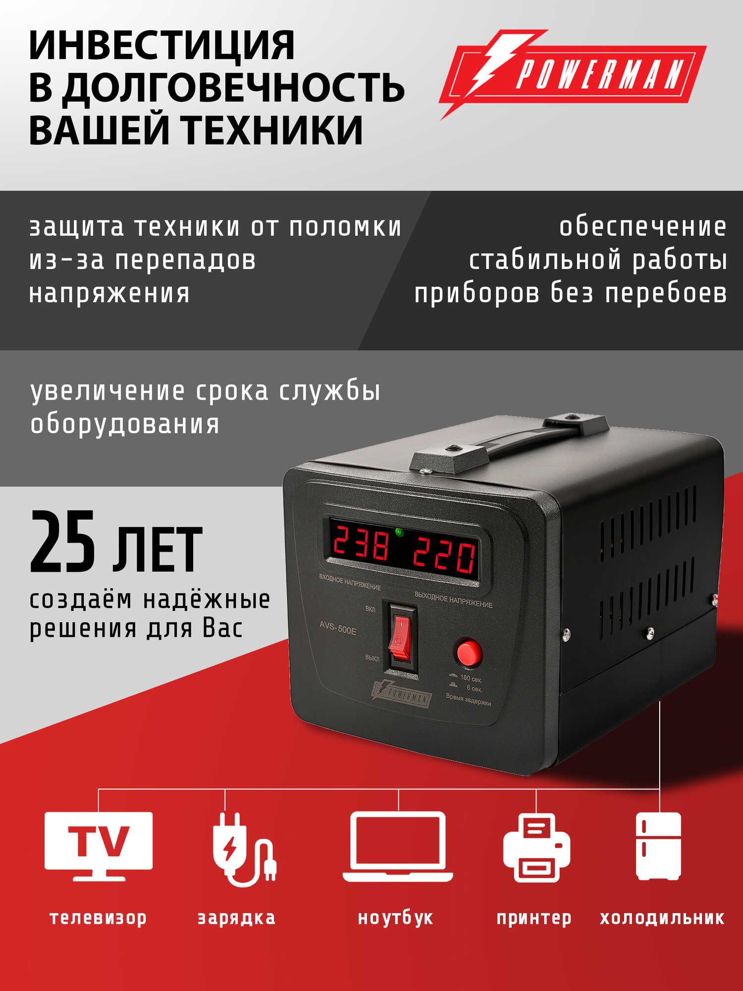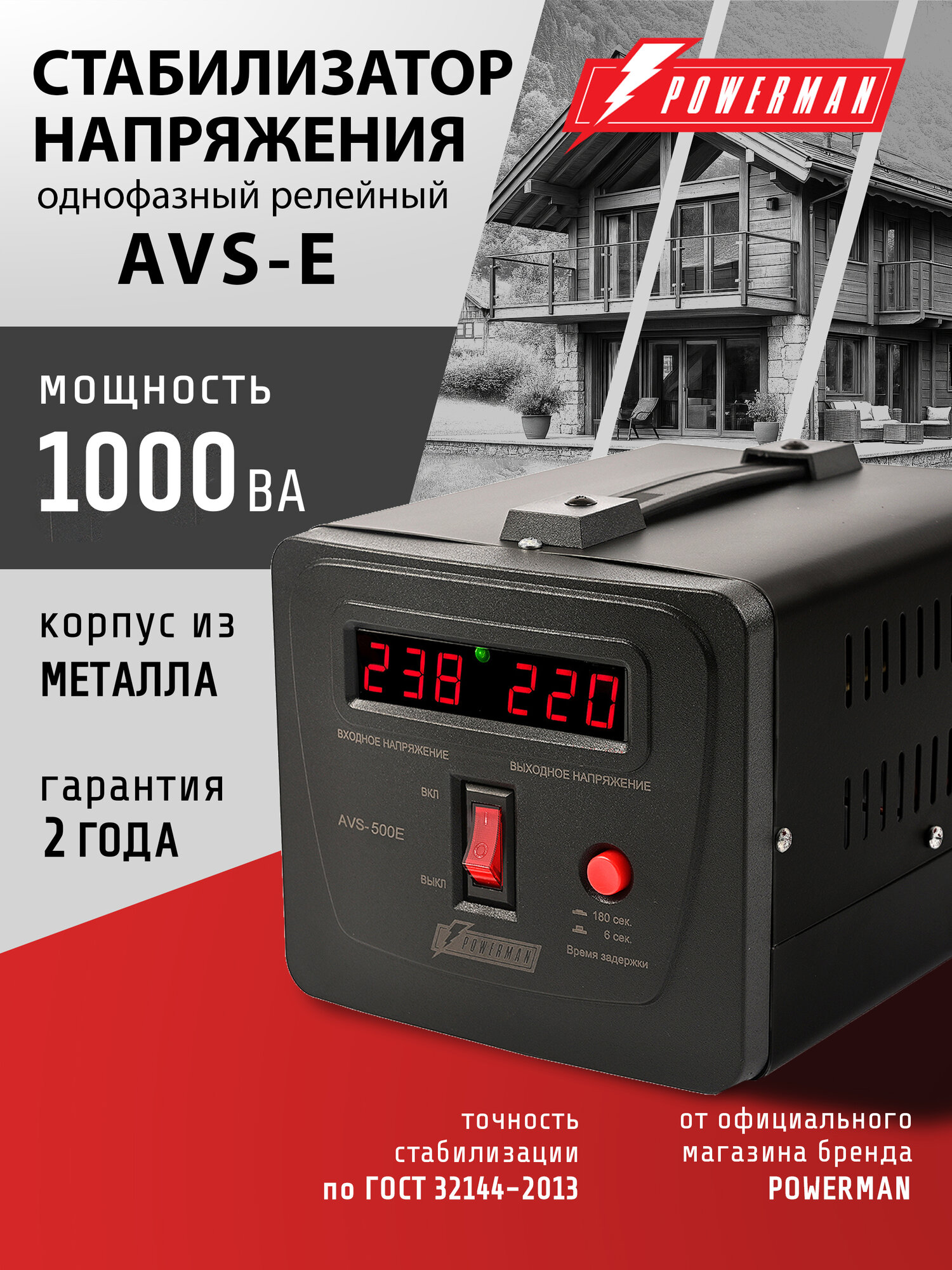 Стабилизатор напряжения AVS 1000 E Black, релейный, Powerman интересное: