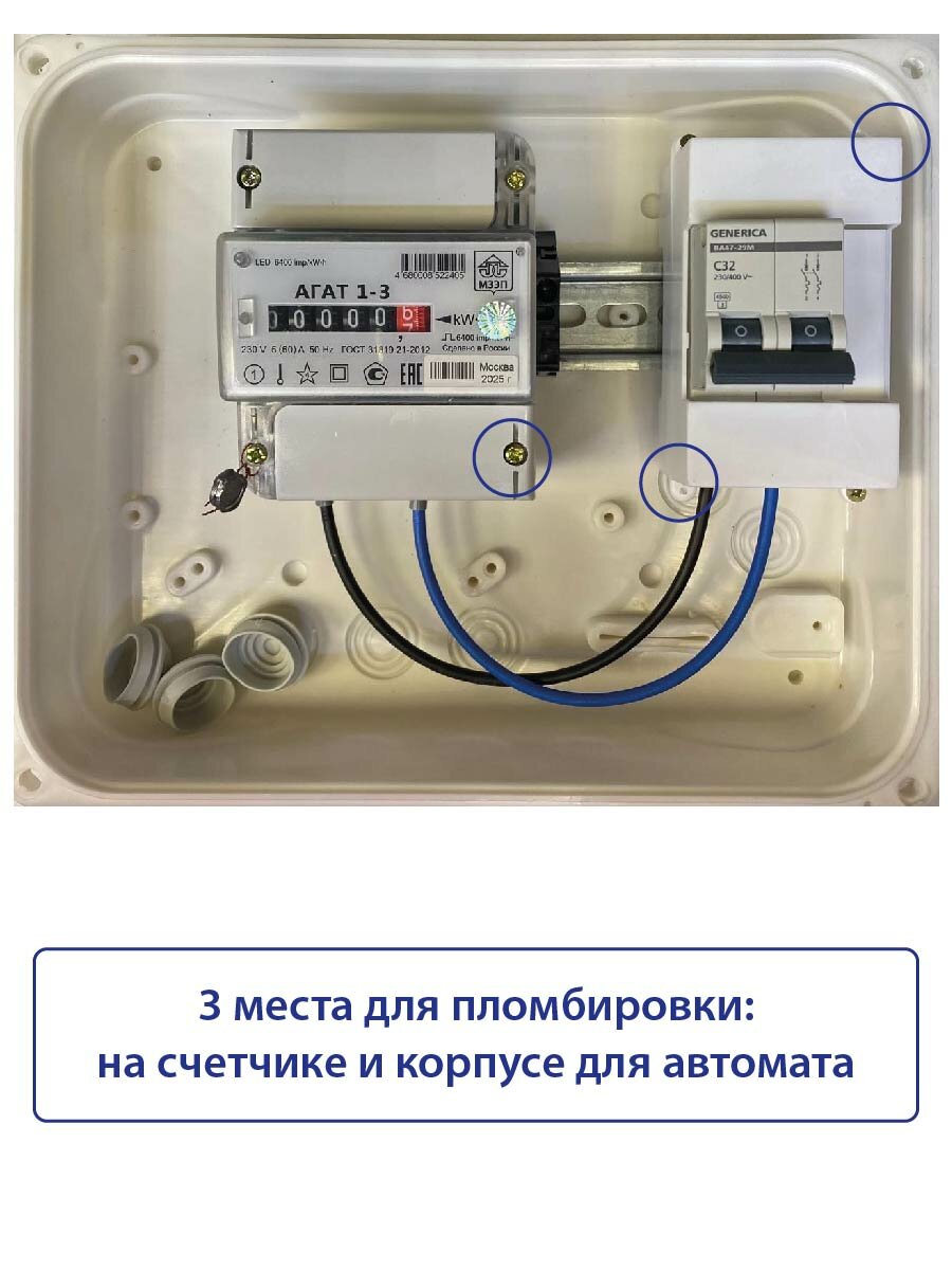 Комплект Гаражный-1А-32: Щит учёта электроэнергии в сборе СК 1-3: счетчик Агат 1-3 (выпуск 2025г.), автомат C32 интересное: