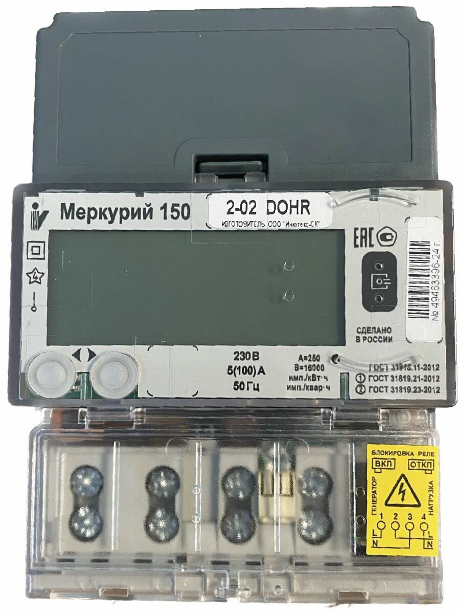 Счетчик электроэнергии Меркурий 150 2-02 DOHR однофазный многотарифный 5(100)А интересное: