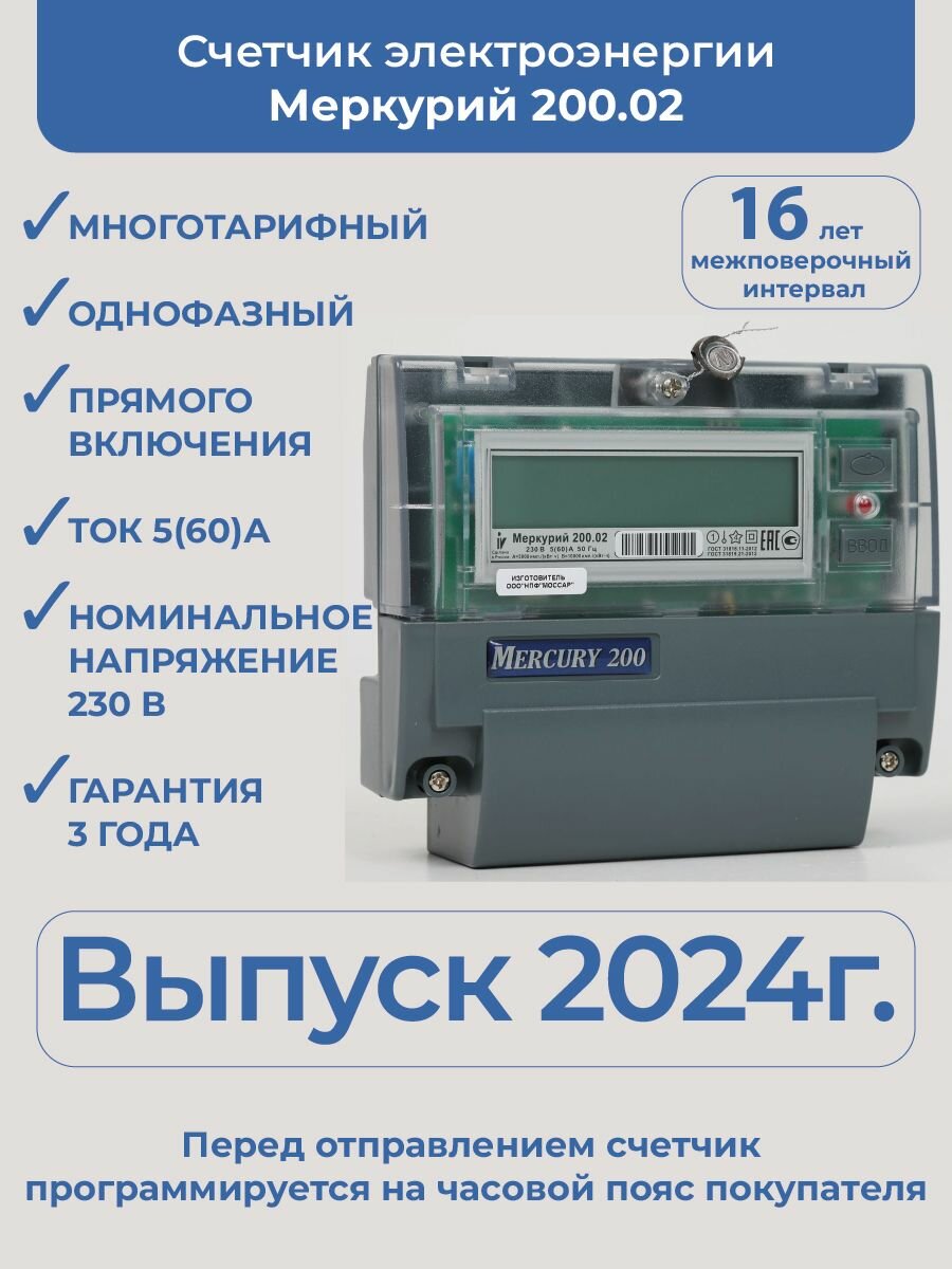 Счетчик однофазный многотарифный Меркурий 200.02 ( 2 тарифа день/ночь время Москва) интересное: