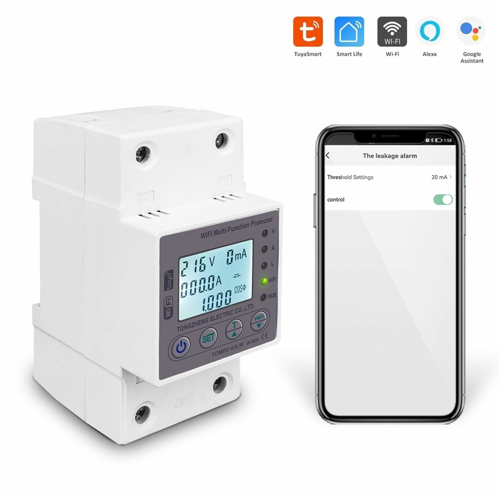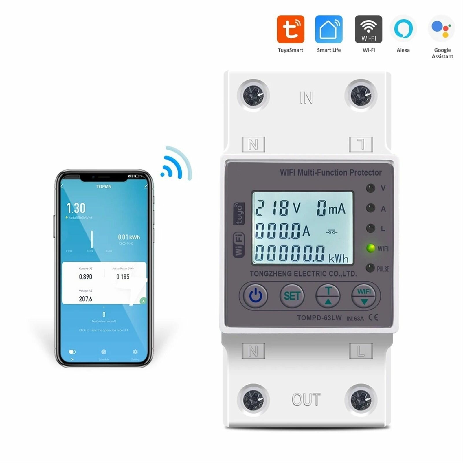 Купить Счетчик цепи WIFI smart switch с защитой от напряжения и утечки, 63A