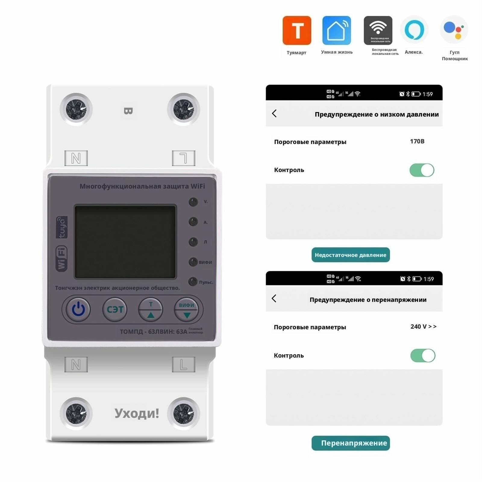 Счетчик цепи WIFI smart switch с защитой от напряжения и утечки, 63A интересное: