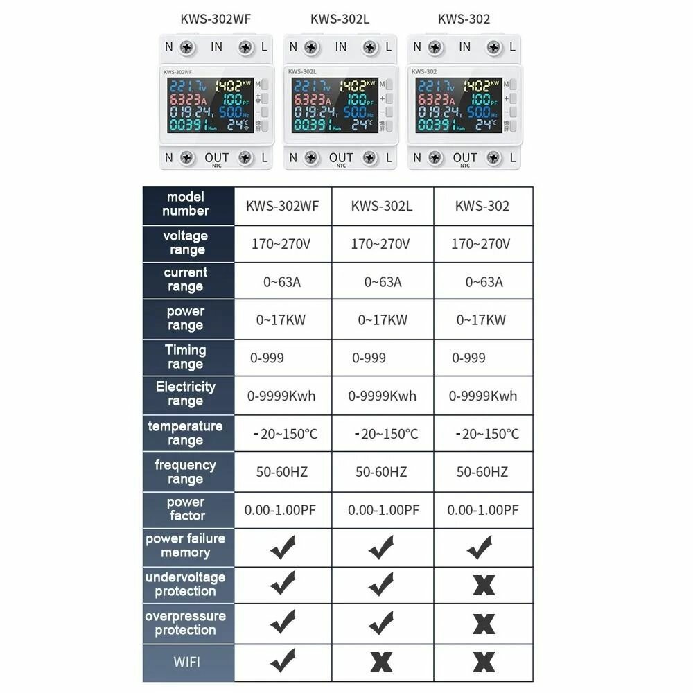 Счетчик электроэнергии, Tuya WiFi, установка на DIN-рейку, KWS-302WF, с Wi-Fi и функцией отключения питания интересное: