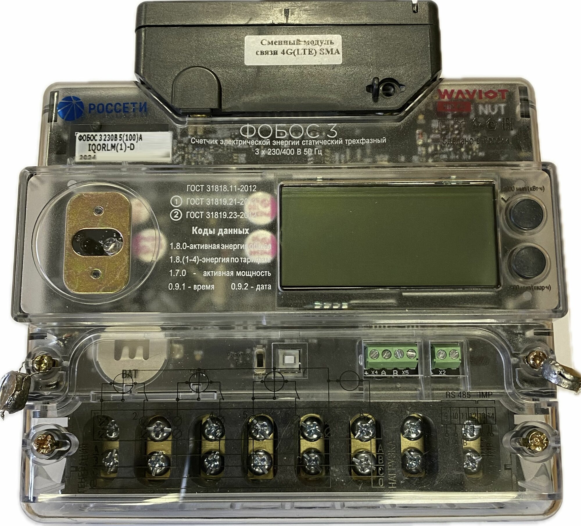 Купить Счетчик электроэнергии ФОБОС3 IQORLM(1)-D в комплекте сменный модуль связи 4G (LTE) SMA тариф Урал 230В 5(100)А