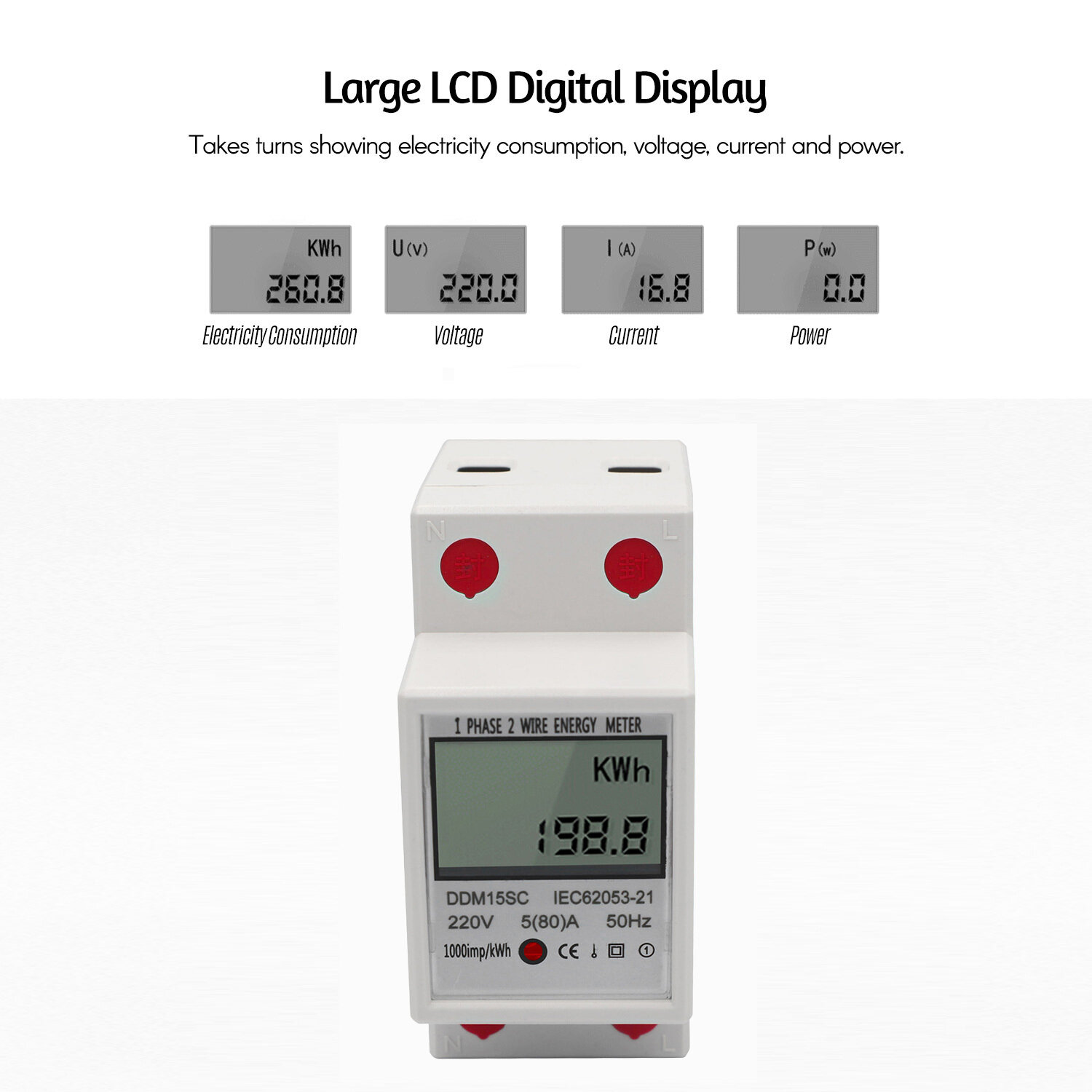 ЖК-дисплей Однофазный счетчик энергии на DIN-рейку Счетчик энергии 5-80A 220В интересное: