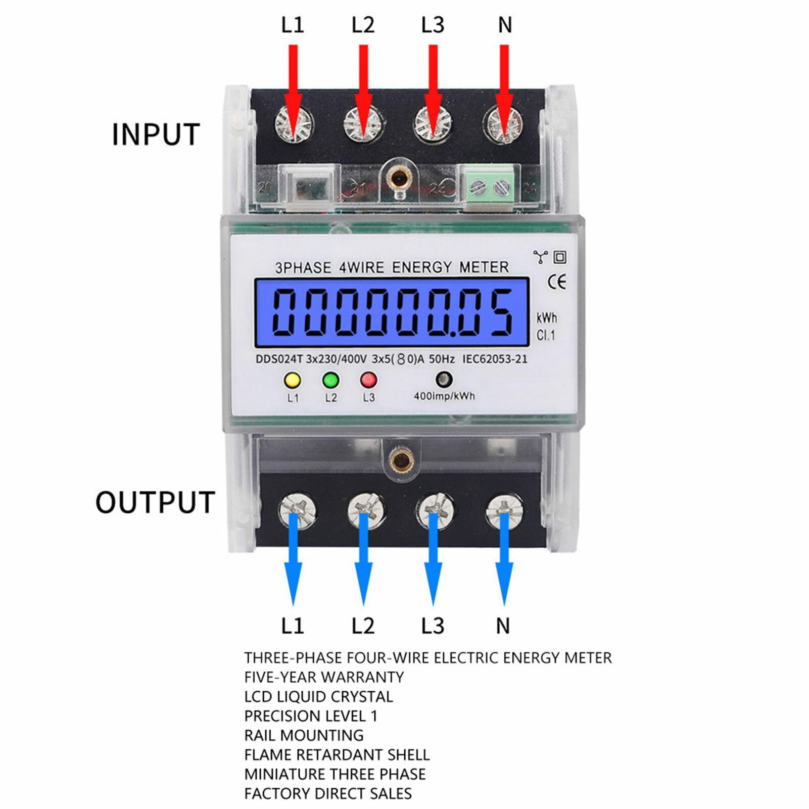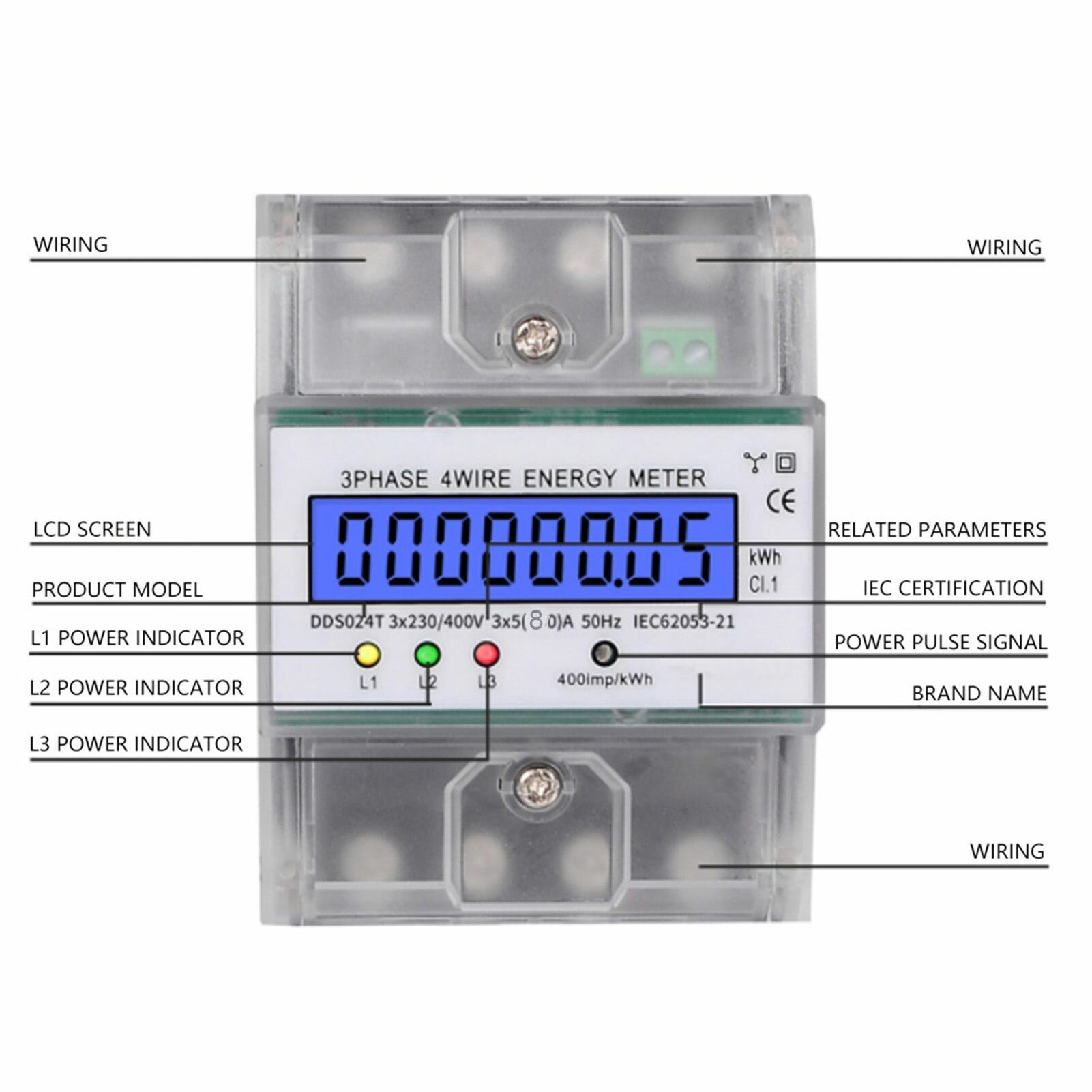 DDS024T 3-фазный 4P электронный счетчик энергии 380 В ЖК-цифровой дисплей на DIN-рейке с прозрачной крышкой интересное: