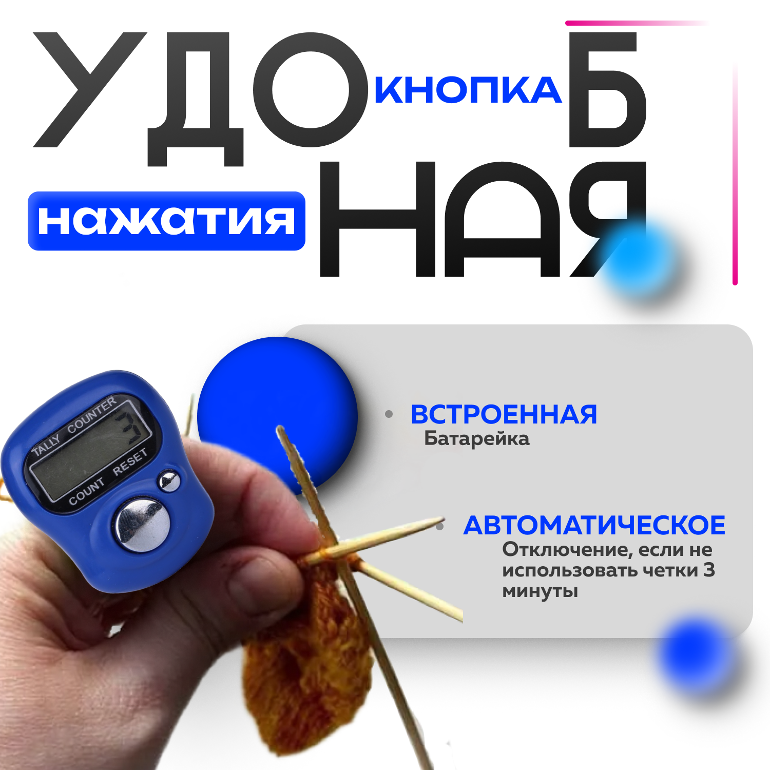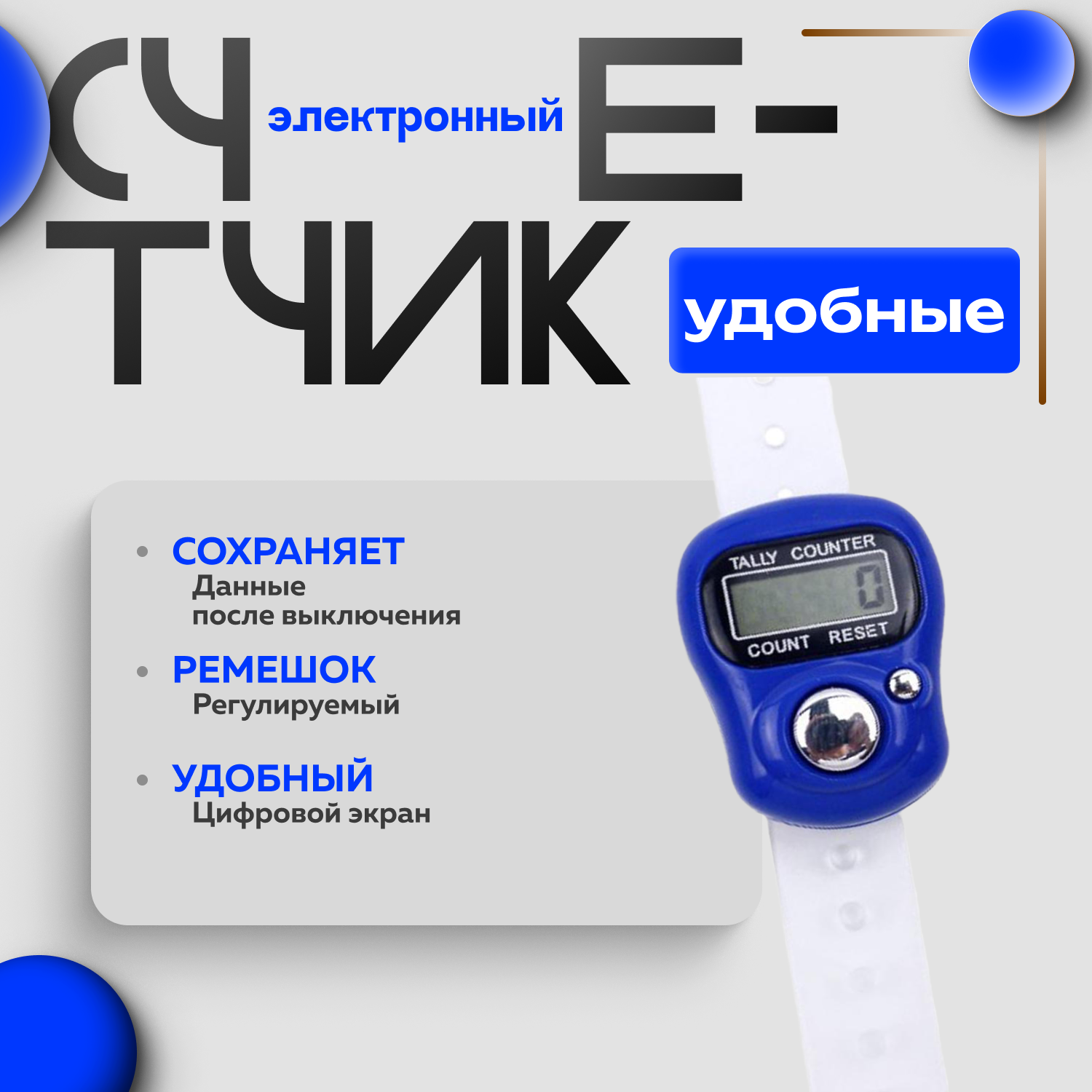 Электронный ручной счетчик нажатий Smartron-175 темно-синий интересное: