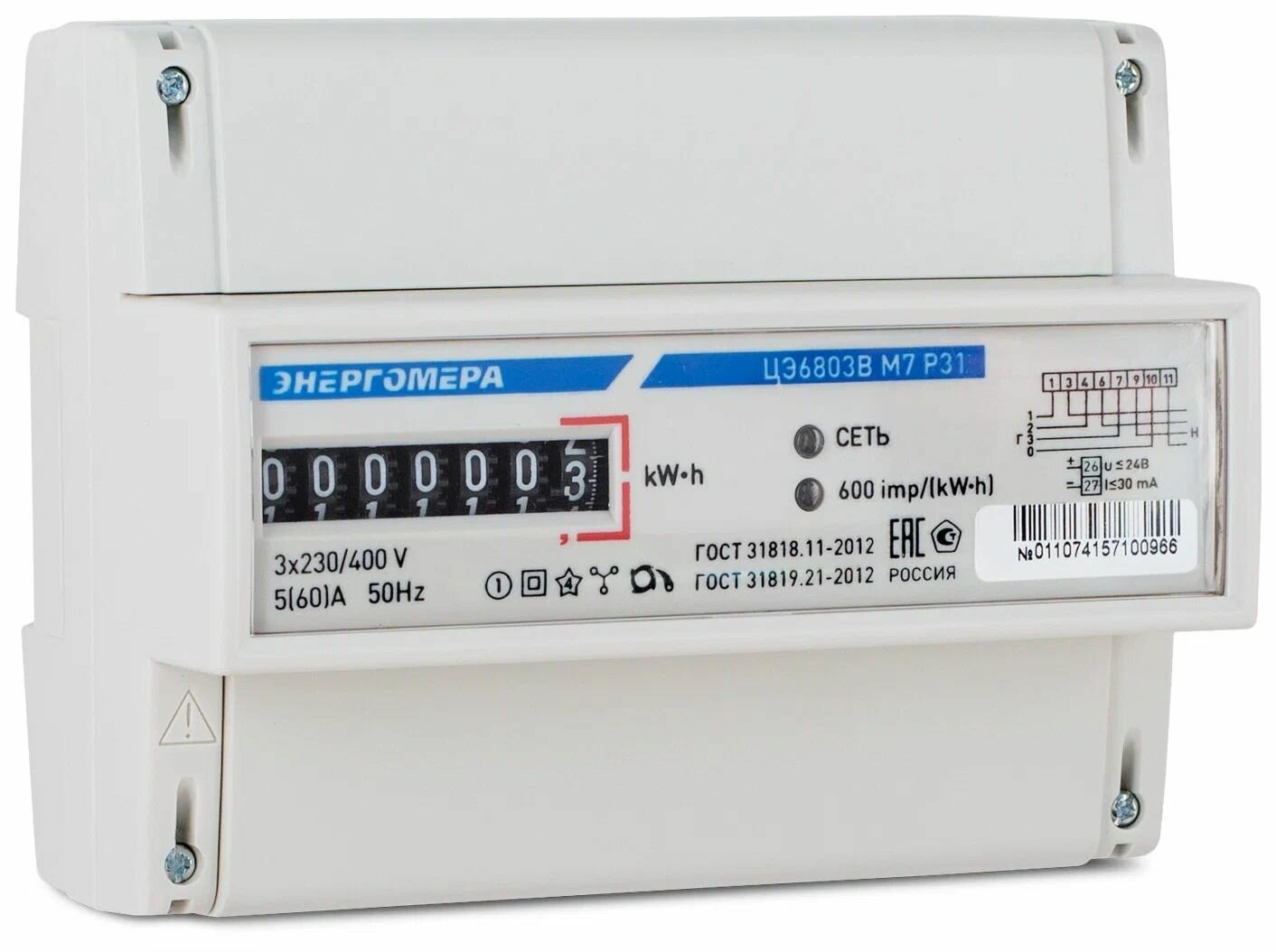 Купить Счётчик 3 фазный 1 тарифный акт эн 5-60А 380В механический дисп DIN-рейка(8 мод) телем вых ЦЭ-6803В/1 5-60А P31 Энергомера GMT+5