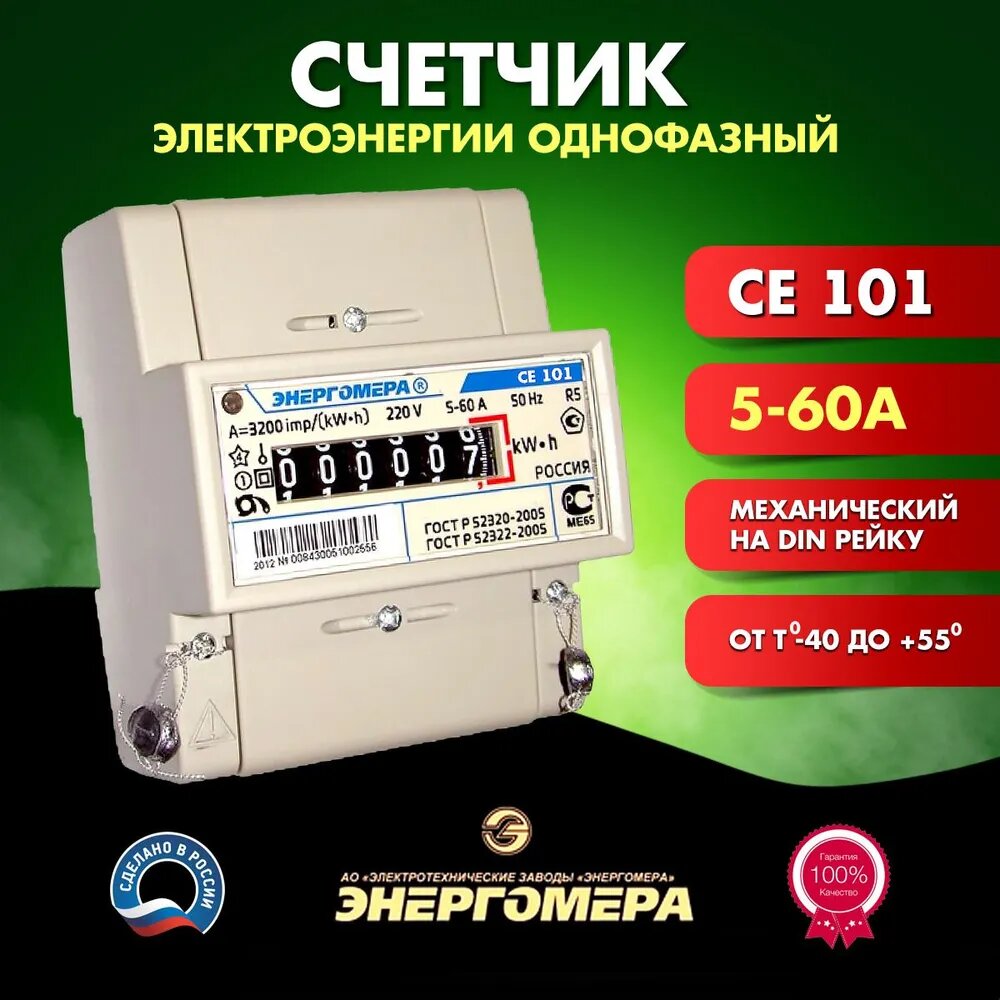 Счетчик СЕ 101 R5 145 М6 1ф 5-60А 1.0 класс точн. 1 тариф. мех. DIN-рейка интересное: