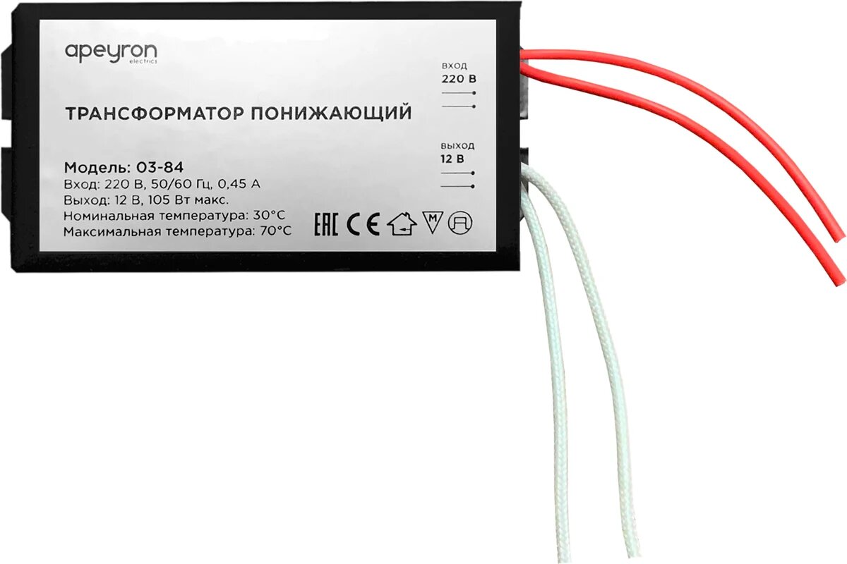 APEYRON Трансформатор понижающий 12В, 35-105Вт, 82х37х24мм, металл, черный 03-84 интересное: