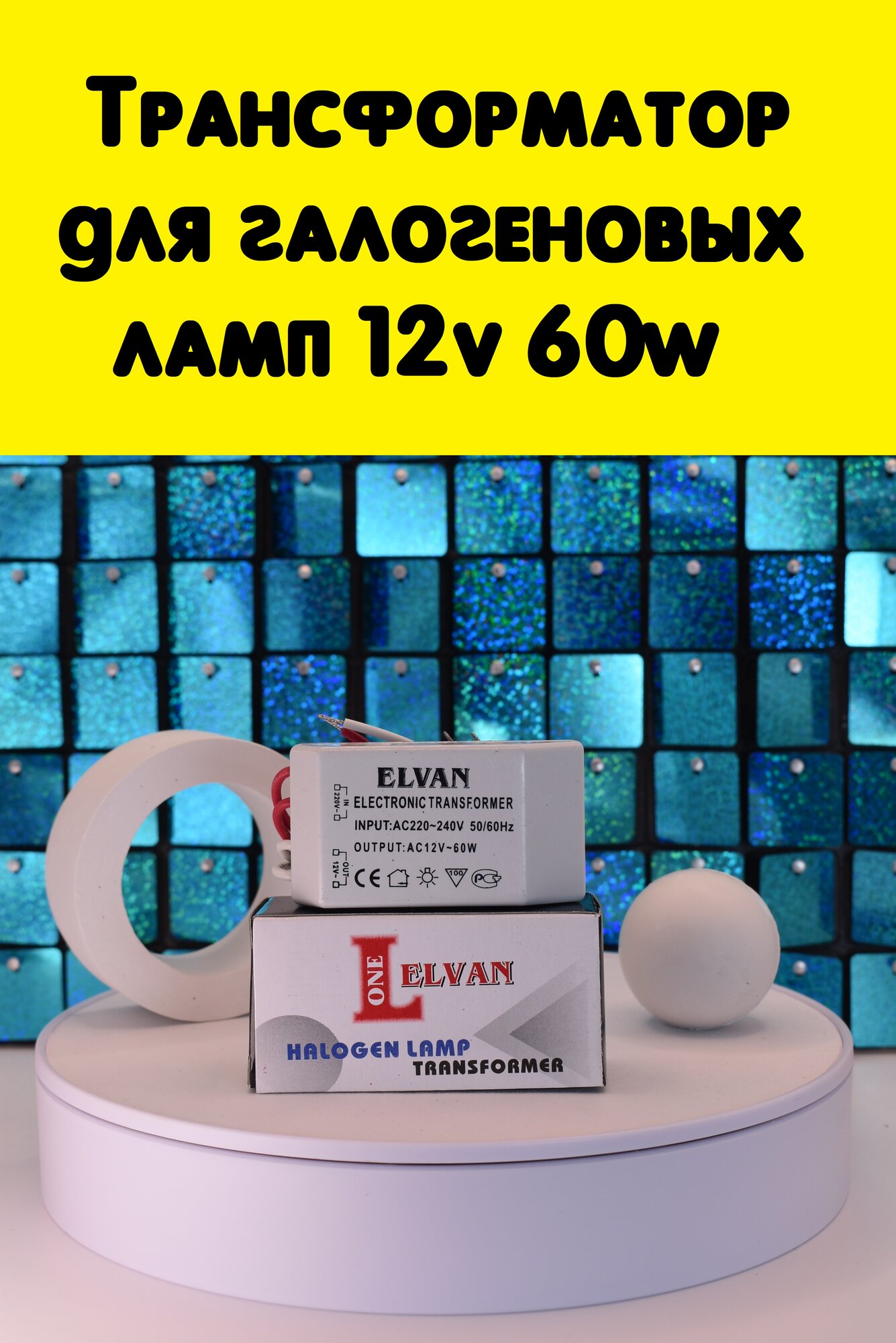Трансформатор 220-12V 60w для галогеновых ламп ELVAN интересное: