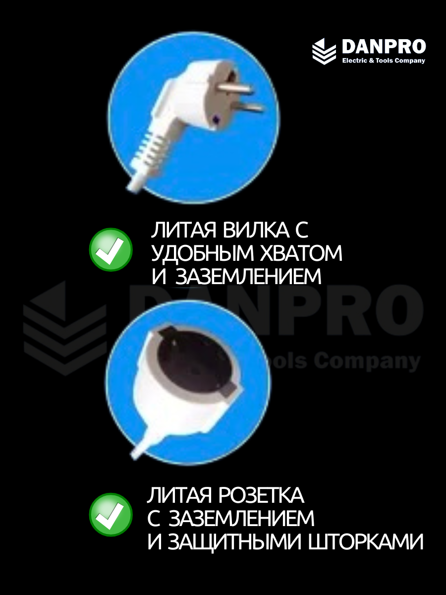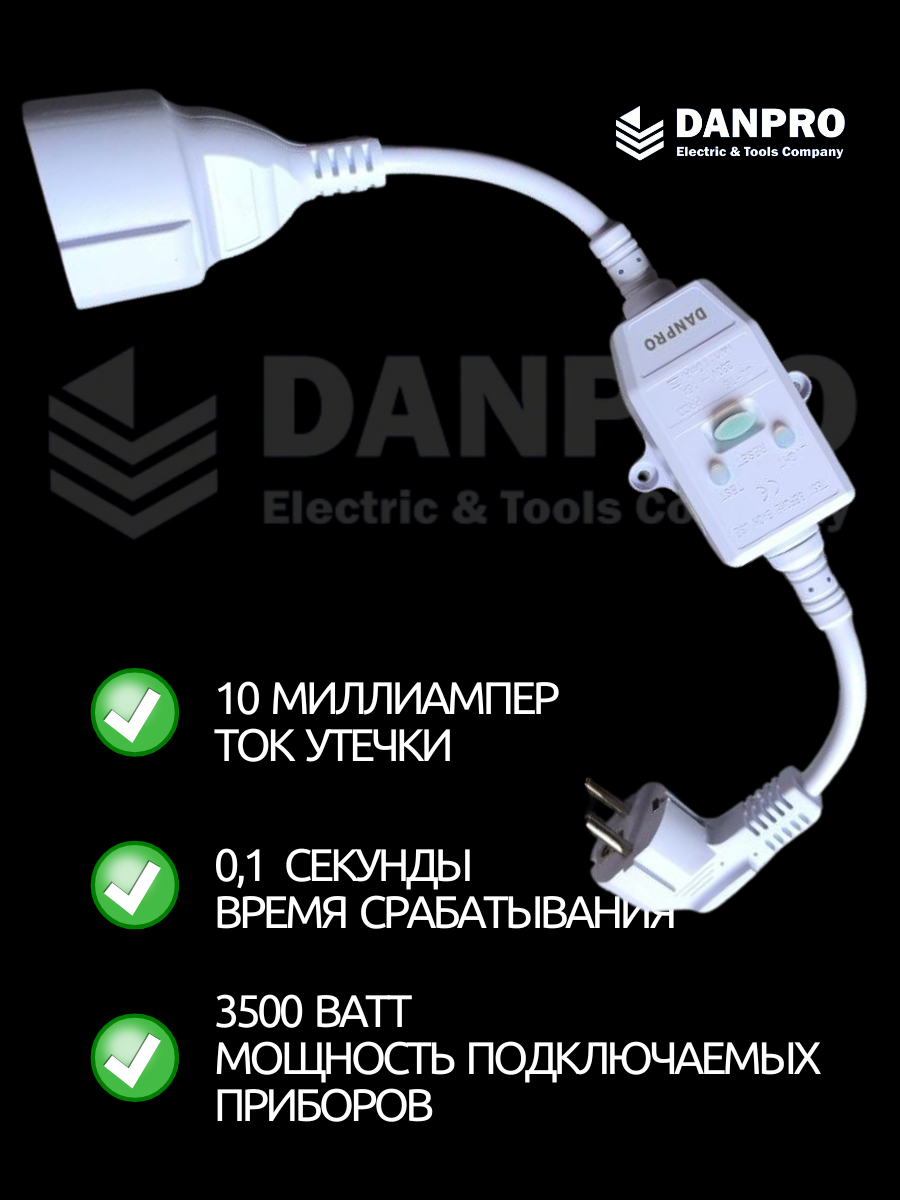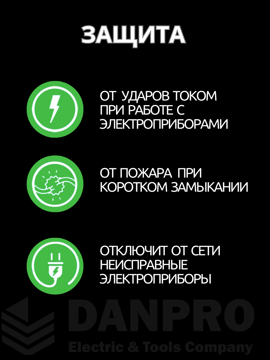 Удлинитель с УЗО 16А, 3,5 кВт, 220В, 40 см для бытовой техники, водонагревателей и строительных инструментов интересное: