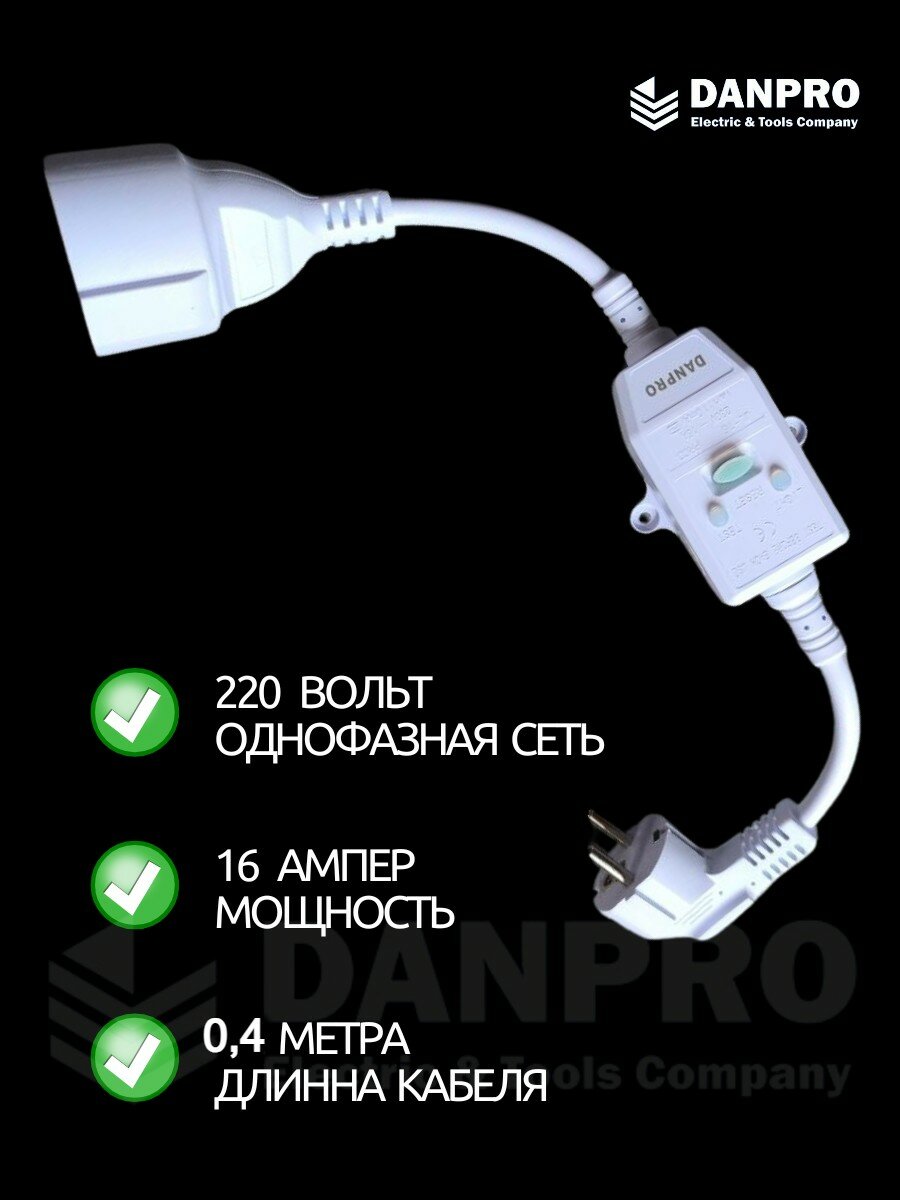 Купить Удлинитель с УЗО 16А, 3,5 кВт, 220В, 40 см для бытовой техники, водонагревателей и строительных инструментов