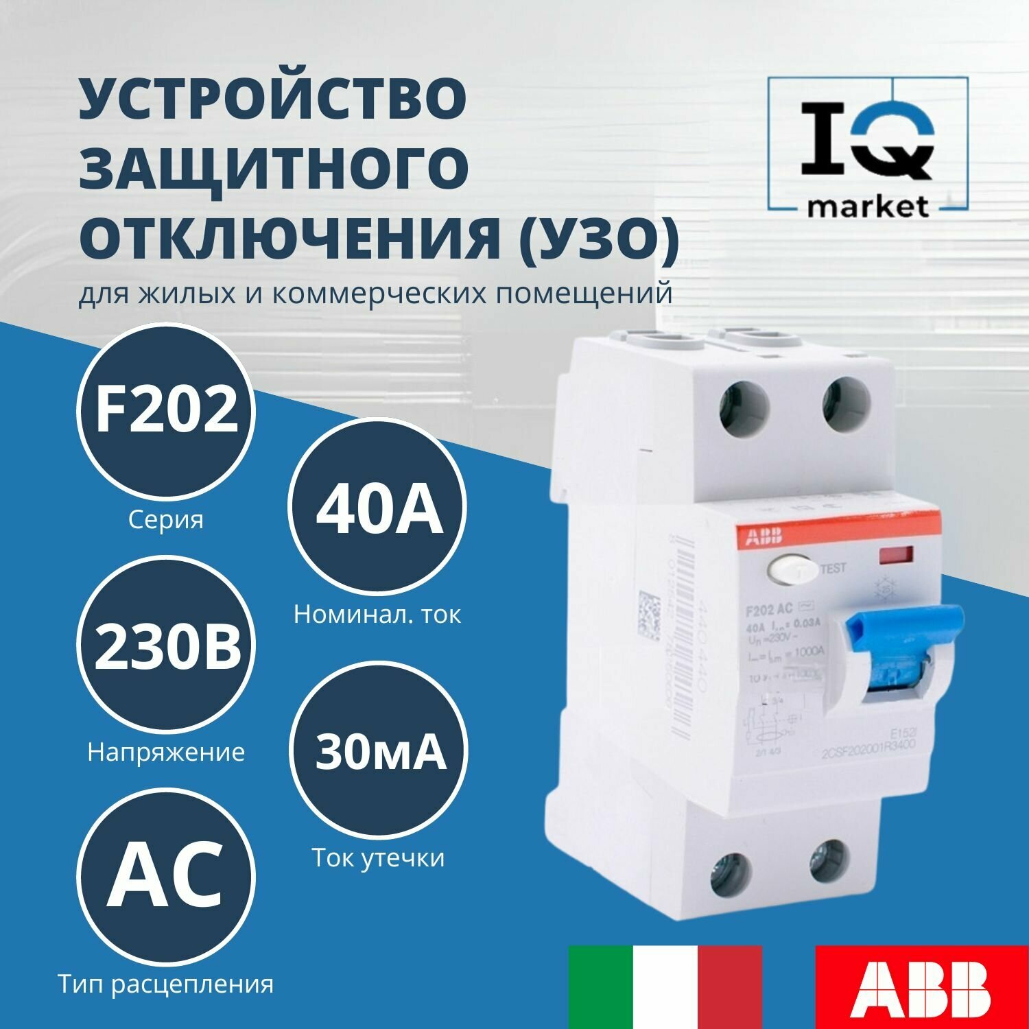 Устройство защитного отключения УЗО ABB F202 40A 30mA/AC 2CSF202001R1400 интересное: