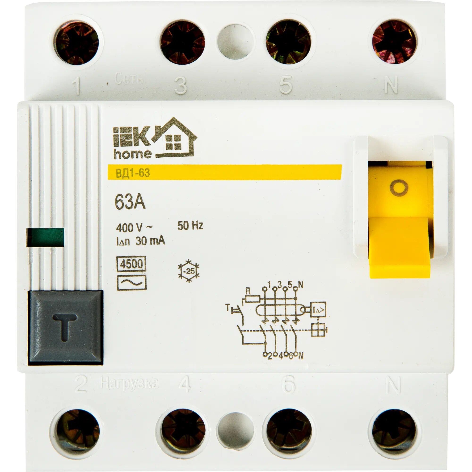 Купить УЗО Iek Home ВД1-63 3P N 63 A 30 мА 4.5 кА AC MDV13-4-063-030