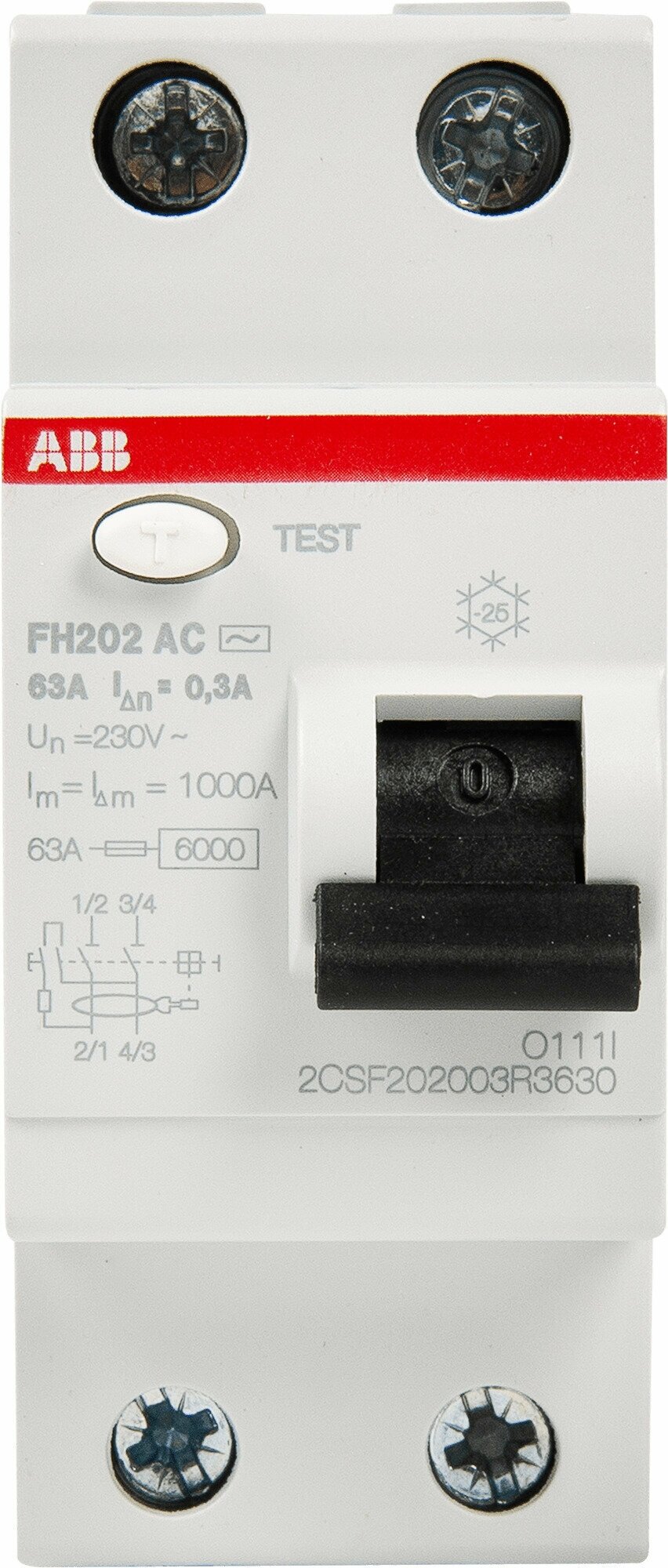 Купить УЗО ABB 300 мА тип АС FH202, 63 А, 300 мА, 2 полюса