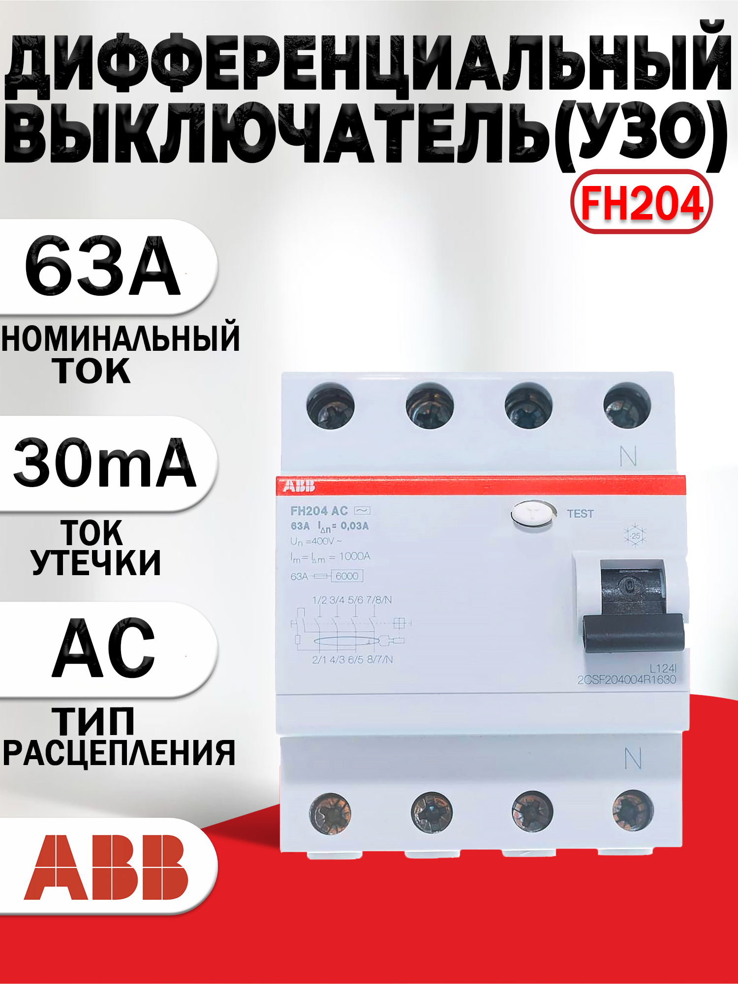 УЗО (Устройство защитного отключения) ABB FH204AC-63/30mA 2CSF204004R1630 интересное: