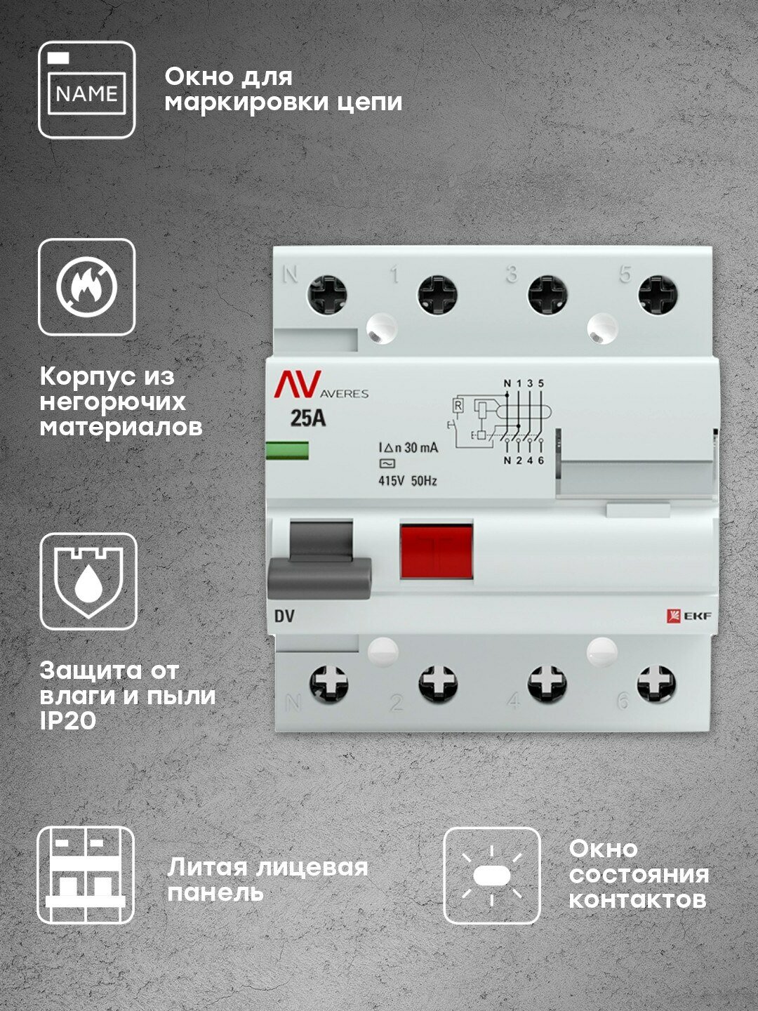 Устройство защитного отключения DV 4P 25А- 30мА (AC) EKF AVERES - 1 шт интересное: