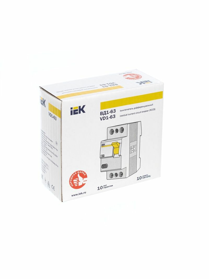 Устройство защитного отключения УЗО 2-пол. 25А 30мA тип АC серия ВД1-63 MDV10-2-025-030 IEK (ИЭК)