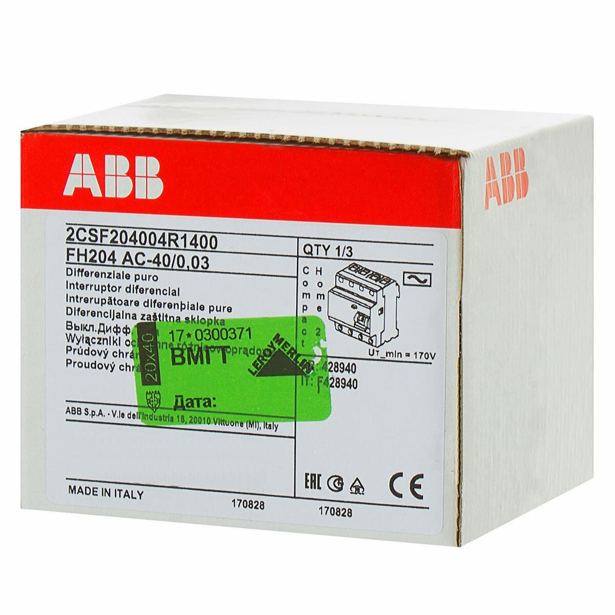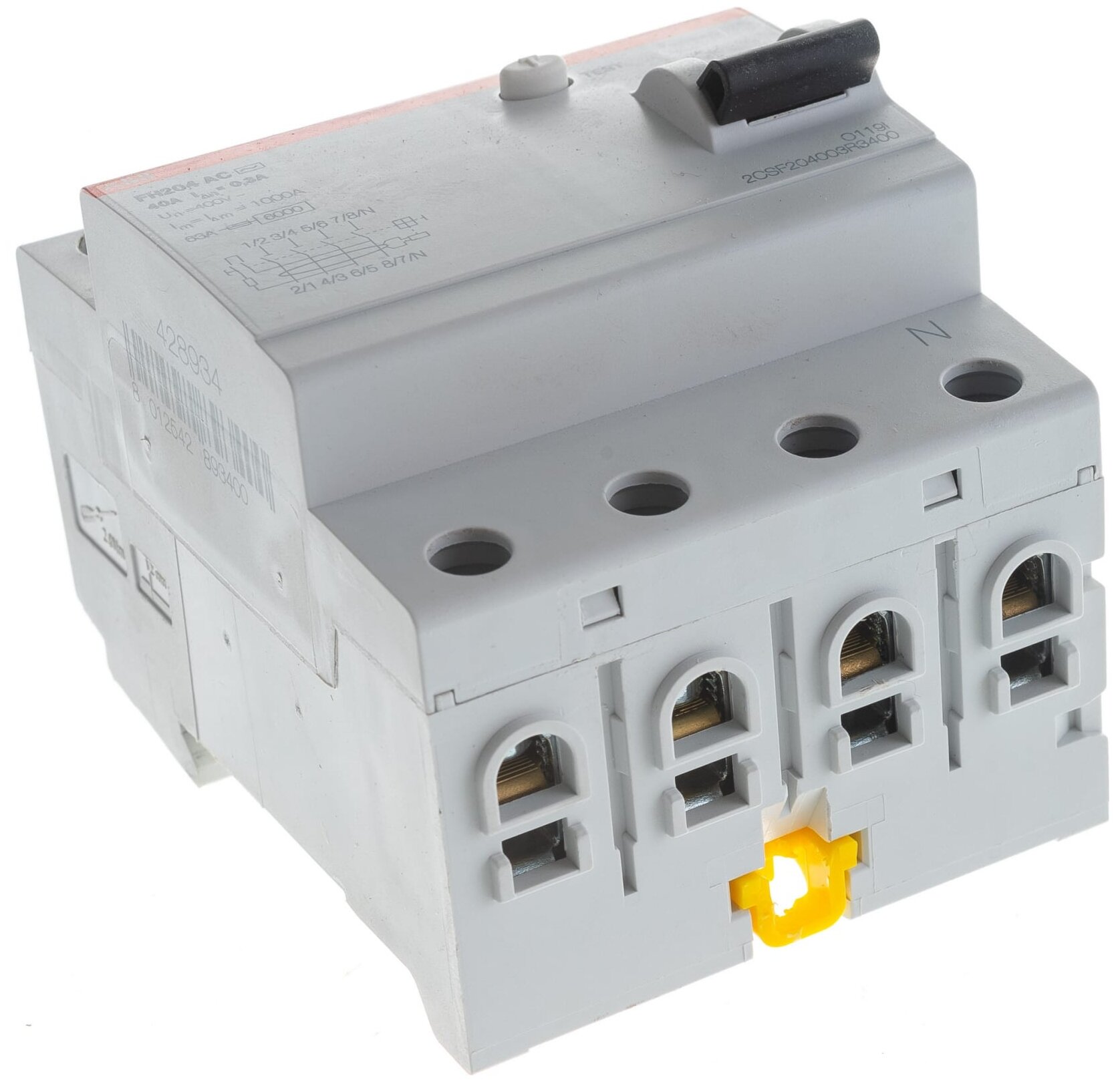 Купить Выключатель дифференциального тока УЗО ABB FH204 AC-40/0,03 4 полюса 40 А 30 мА тип AC2CSF204004R1400