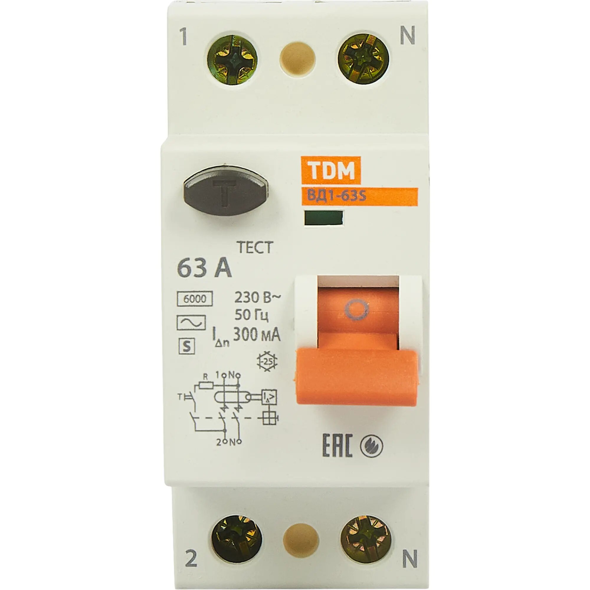 Купить УЗО Tdm Electric ВД1-63S 2P 63 A 300 мА 4.5 кА AC SQ0203-0061